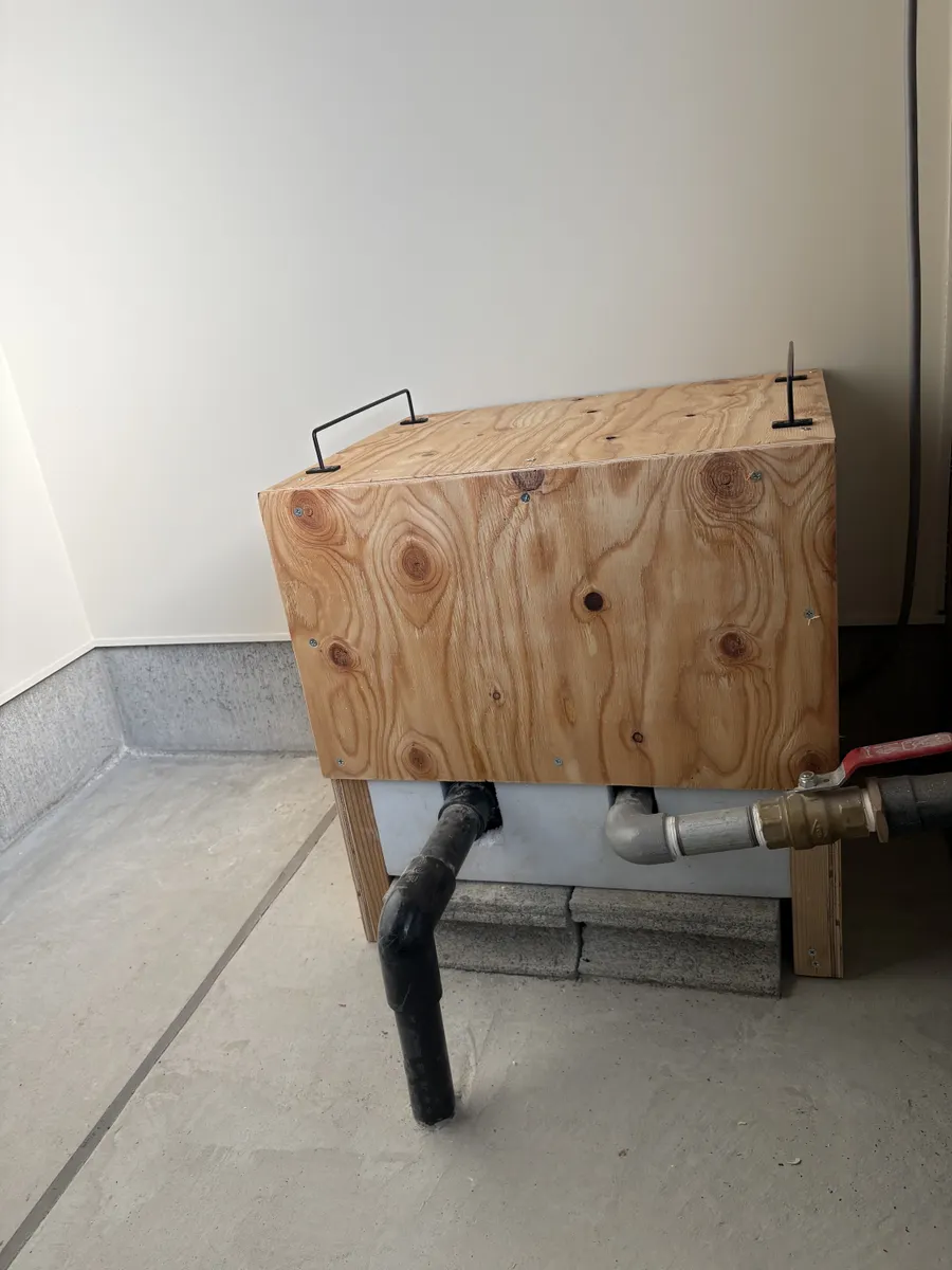 トップ > DIY > その他 > 年始diy第一弾、ポンプの防音 mimin 2026/01/04 14:26 年始diy第一弾、ポンプの防音 写真の井戸ポンプ、美味しい水を出してくれるのはいいのですが音が気になります。感覚的に70db、知らんけど😆 スタイロフォームピン(断熱クリップ)だけ購入して囲いを作ってみました。 皆さんのお宅の床下もこうなっているはずほぼ完成塗装をして完成です。50dbぐらいになったかな?🤭 いいね 共有する 共有する X LINE リンクをコピー コメントする 1 件の返信 (新着順) ミュートしたユーザーの投稿です。 投稿を表示 シダーローズ 2026/01/04 19:39 家を建てた時、井戸を掘ろうかと考えたんですよ。 でも掘ろうと思ってた場所がリビングのすぐ外で、「ポンプの音って結構うるさいですよ」って言われて諦めました。 工夫しだいで防音できるんですねー。 いいね 返信する ミュートしたユーザーの投稿です。 投稿を表示 mimin 2026/01/05 11:17 シダーローズ 動力のポンプから単相200のポンプに変えた途端に気になり出しました😆 深夜は特にうるさいです、でもこれをして多少良くなりました😊 ありがとうございます😊 いいね 返信する ミュートしたユーザーの投稿です。 投稿を表示 はっちゃん 2026/01/08 09:54 シダーローズ 私は音に神経質です… いいね 返信する ミュートしたユーザーの投稿です。 投稿を表示 mimin 2026/01/08 17:05 はっちゃん 音って気になりますね😔 対人でなく機械なのでイライラはしないですけどね🙃 いいね 返信する ミュートしたユーザーの投稿です。 投稿を表示 シダーローズ 2026/01/09 08:49 はっちゃん 家から離れてたらそうでもないらしいんですけど、特に夜になったらやっぱり耳につくらしいですよ。 いいね 返信する