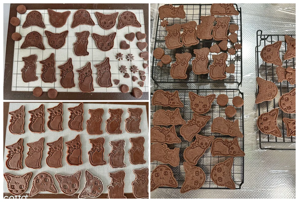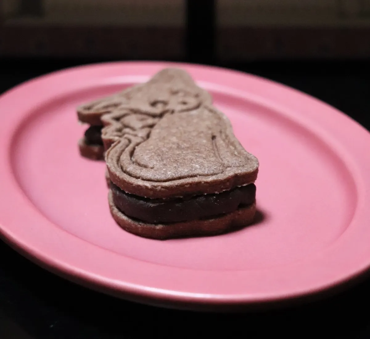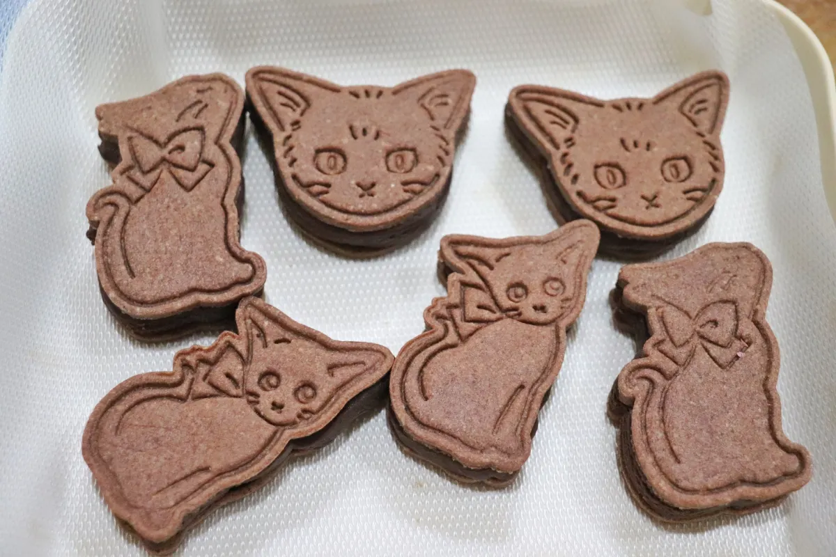 イラストレーターのくらはしれいさんのにゃんこイラストがモチーフのクッキー型を使って、生チョコサンドクッキーを作りました🐈🍪