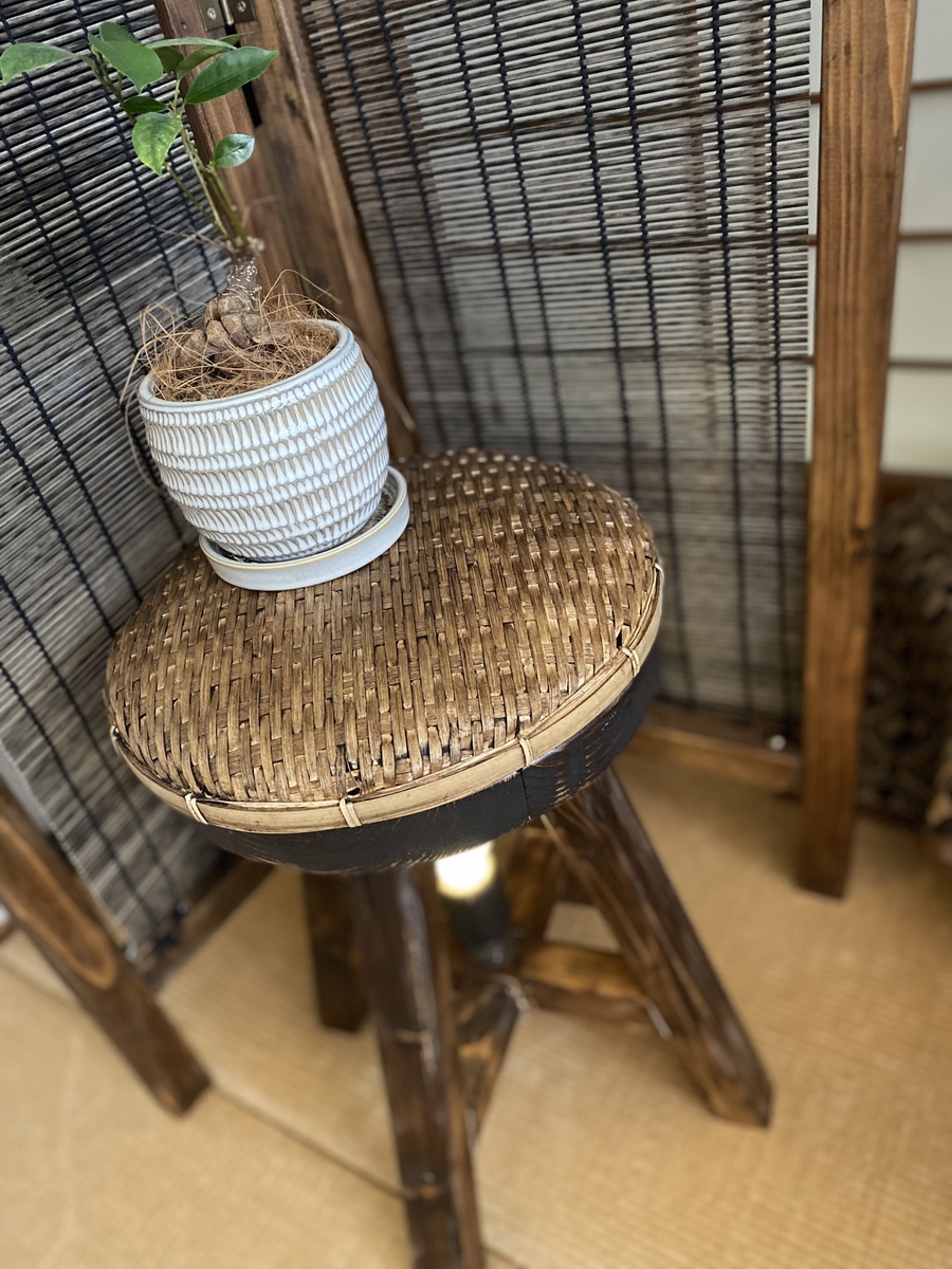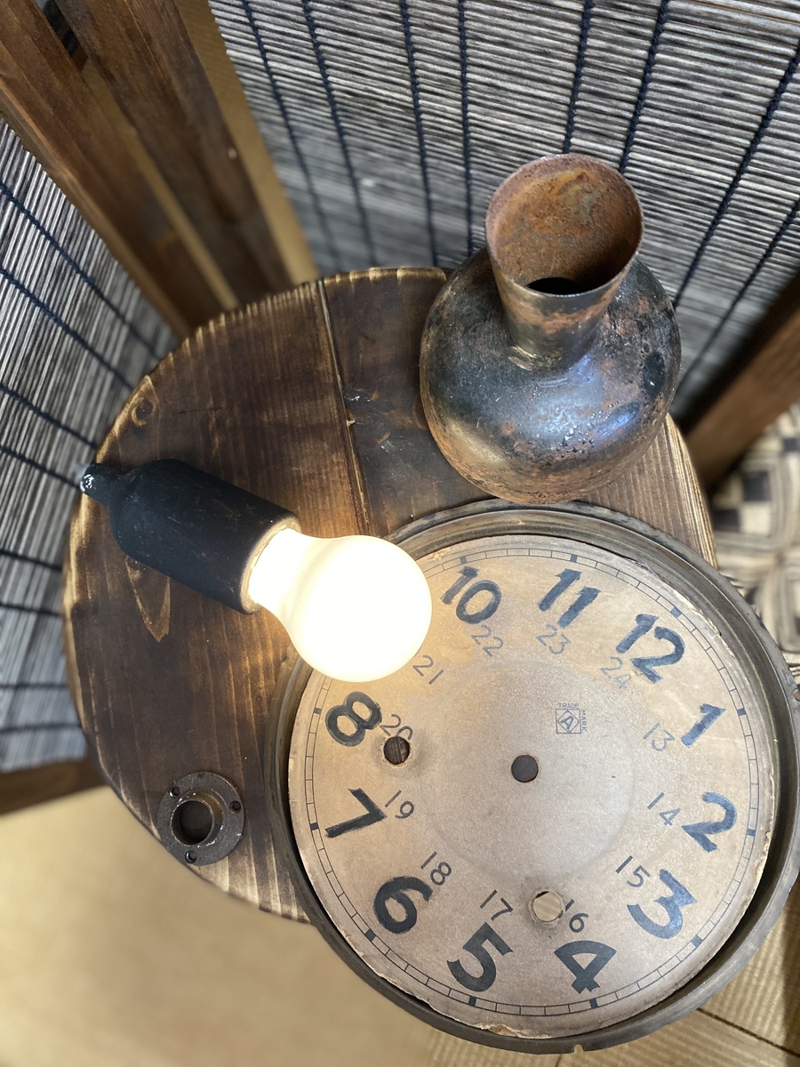 花台として筋交にも小物を飾ってみたら、アンティークな時計盤がピッタリだった‼︎