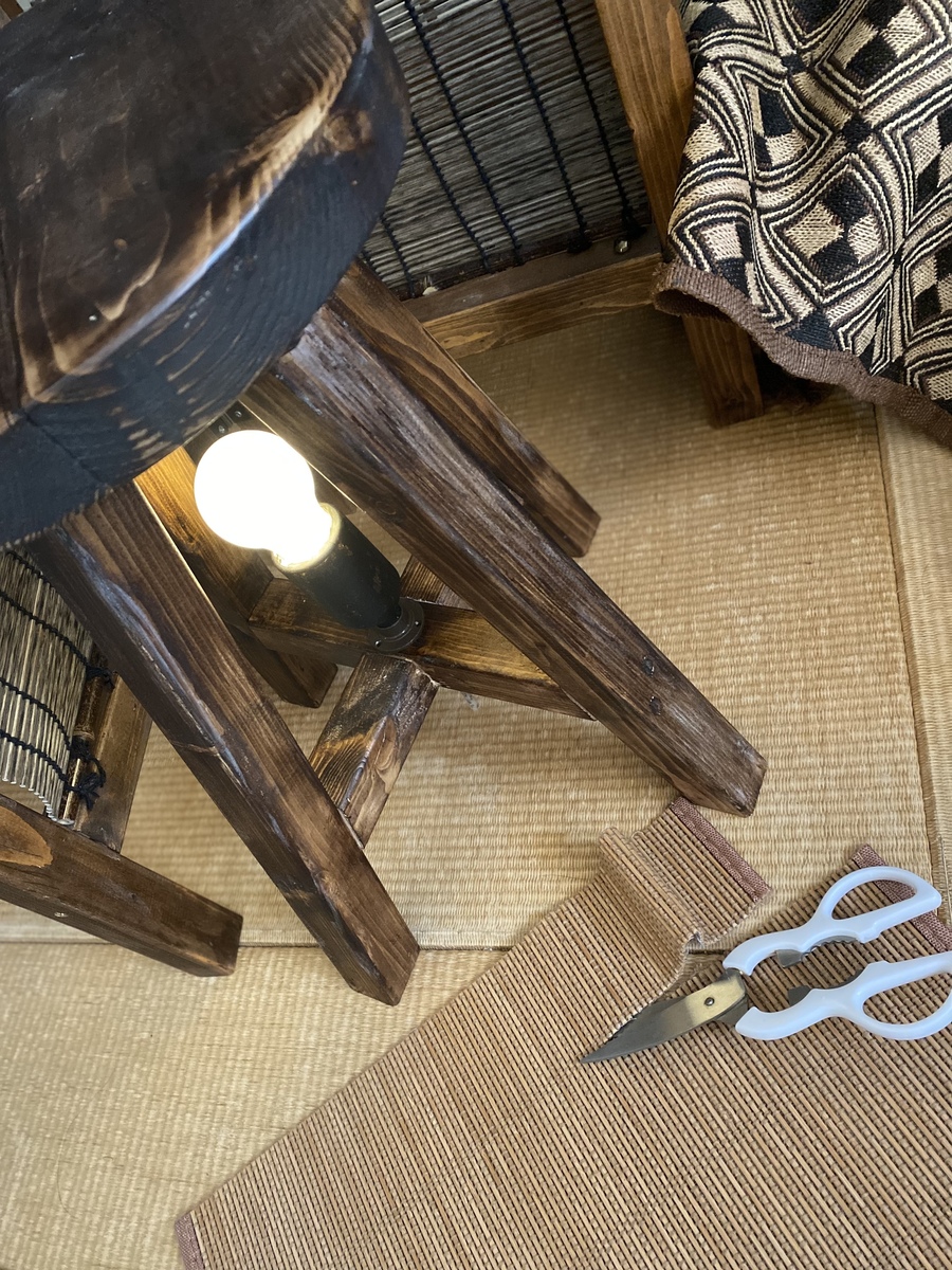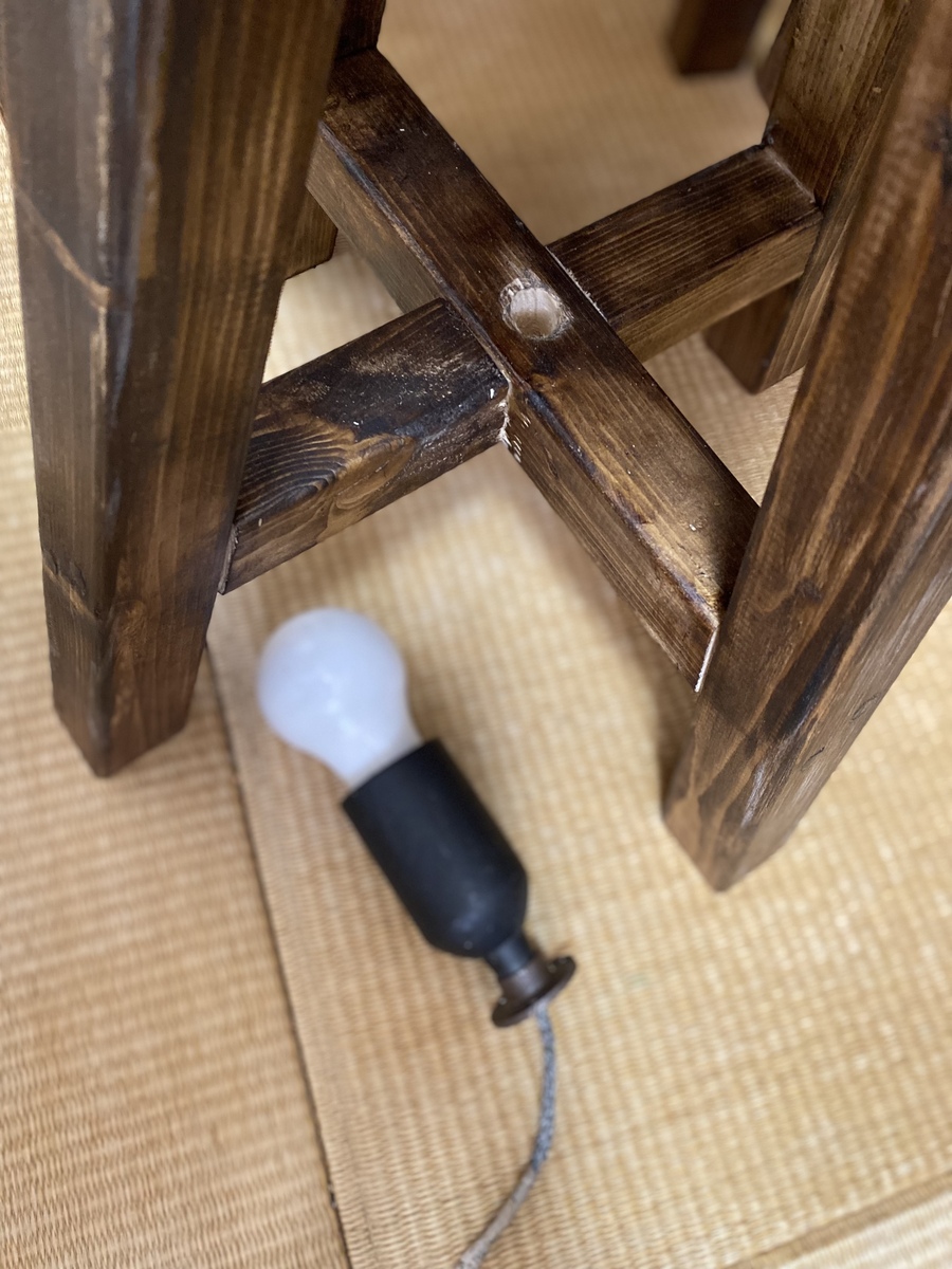 ライトだけならコの字の台を作って穴を開けてソケットの上に置く方が持ち運べるしいい気もするけど…間接照明ってことで。