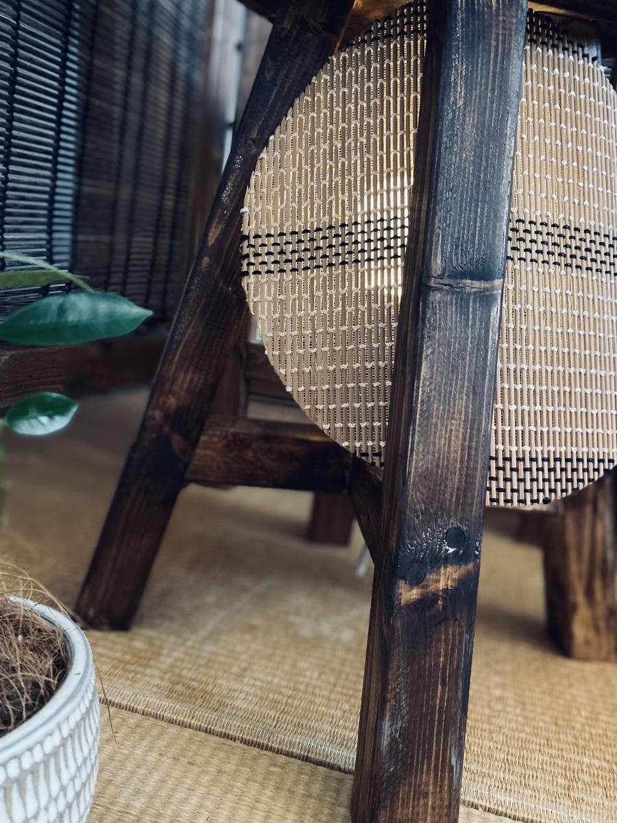 高さ調節式のスツールを作った時のフォルムがお気に入りだったので、サイズを参考にして38mmの角材を15度にカット。脚の長さは400mm、筋交を下から100mmの高さに。