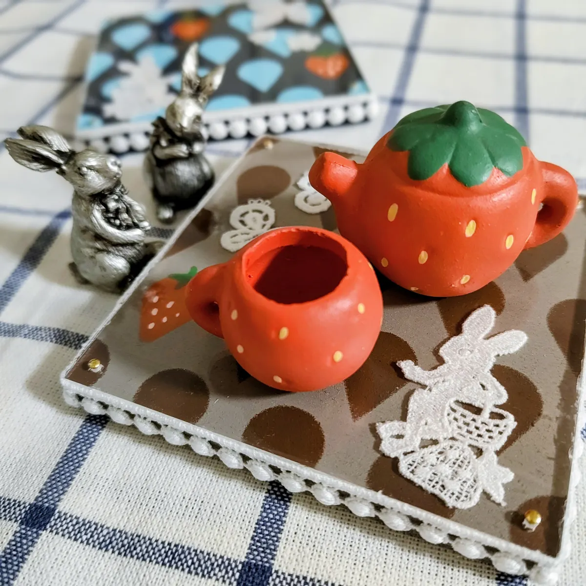 いちごのティーポットとカップの飾りがぴったんこでしたねー😆✨✨✨