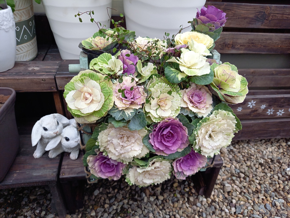 投稿を表示サイドにも葉牡丹が綺麗に植えてあるので、豪華に見えます✨
