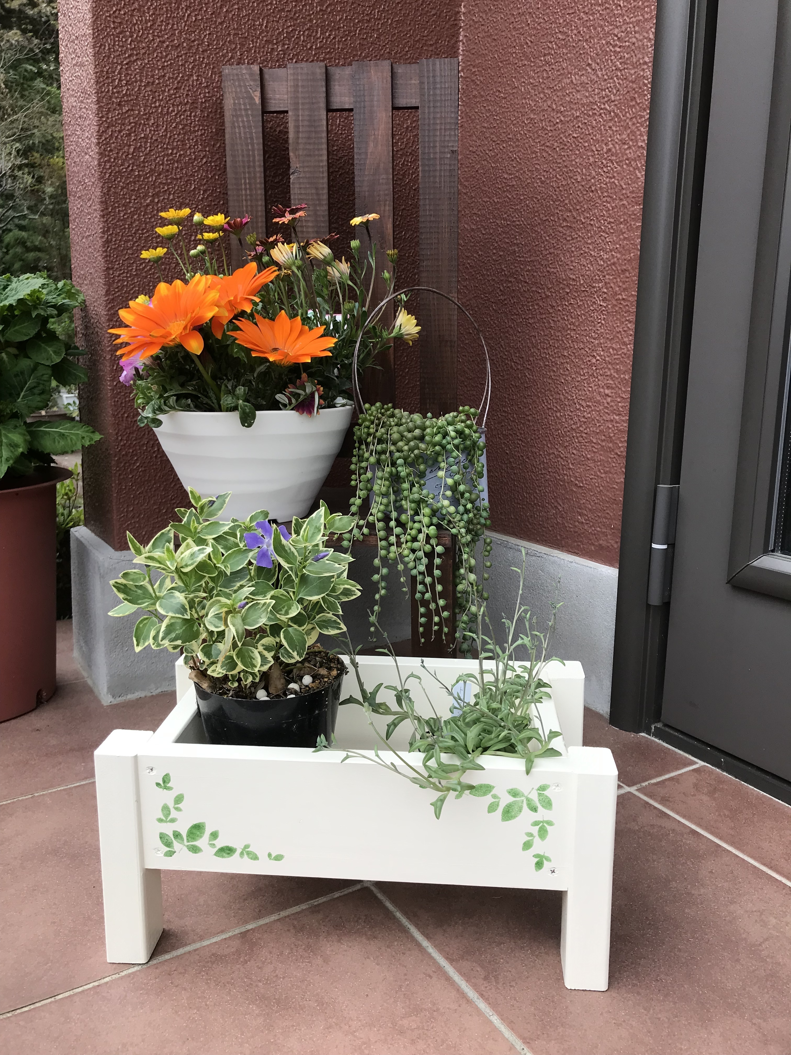 どちらもワンポイントで、白のベースにピッタリ☺️端材で素敵なプランターができるんですね❗️