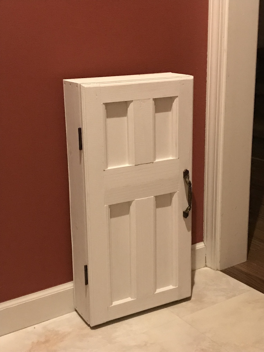 扉をつけるのも初、棚も初、トリマーもこのWSを申し込んでから初めて知ったので当然初、と初めてづくしで、3回めにしては難しすぎる作品でしたが、お手伝いしていただきながら何とか完成しました。歪んでいるし、ちゃんと塗れていないところがありますが、感激です。