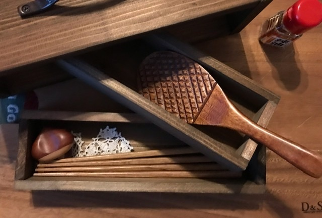 トップ > ワークショップ > 持ち運び便利なカトラリーケース あめちゃん 2024/08/04 18:46 持ち運び便利なカトラリーケース 両サイドから開閉できるので、どこに置いても便利ですね(=´∀`)人(´∀`=) 持ち手もお洒落で、手に優しいです。 ステイン塗料のウォルナットです。S&Bスパイスラックと併用します^^ 食事が楽しくなりますね!ありがとうございました🎶 いいね 共有する 共有する X LINE リンクをコピー コメントする 3 件の返信 (新着順) ミュートしたユーザーの投稿です。 投稿を表示 きょろっち 2024/08/05 08:55 ウォルナット色のステインがレース編みのコースターが引き立って素敵ですね✨✨ しゃもじ? へら? も、とてもお洒落✨✨ いいね 返信する ミュートしたユーザーの投稿です。 投稿を表示 あめちゃん 2024/08/05 10:29 きょろっち ありがとうございます😊✨しゃもじとお揃いの菜箸があるのですが、菜箸は、先日作った、ホールソーで瓶ホルダー🫙に、入れてます✨形も色も気に入って、焼き物フェアで購入しました♪ いいね 返信する ミュートしたユーザーの投稿です。 投稿を表示 きき 2024/08/04 20:24 ケースの中のレース編みがおしゃれですね🤗ケースをワンランク上げる小物ですね🥰とても素敵🤗 このケースいいですよね🥰 いいね 返信する ミュートしたユーザーの投稿です。 投稿を表示 あめちゃん 2024/08/04 22:59 きき ありがとうございます😊余り糸で、ちっちゃなレース編んだのを、そっと寄り添わせてみました。見つけてくれて嬉しいです😃 いいね 返信する ミュートしたユーザーの投稿です。 投稿を表示 ラムちゃん 2024/08/04 19:33 オシャレ😊 このステイン塗料のウォルナットって ホントにいい色ですよね🩷 いいね 返信する ミュートしたユーザーの投稿です。 投稿を表示 あめちゃん 2024/08/04 22:58 ラムちゃん ありがとうございます😊早速使っていますが、とても良い感じです♫ いいね 返信する