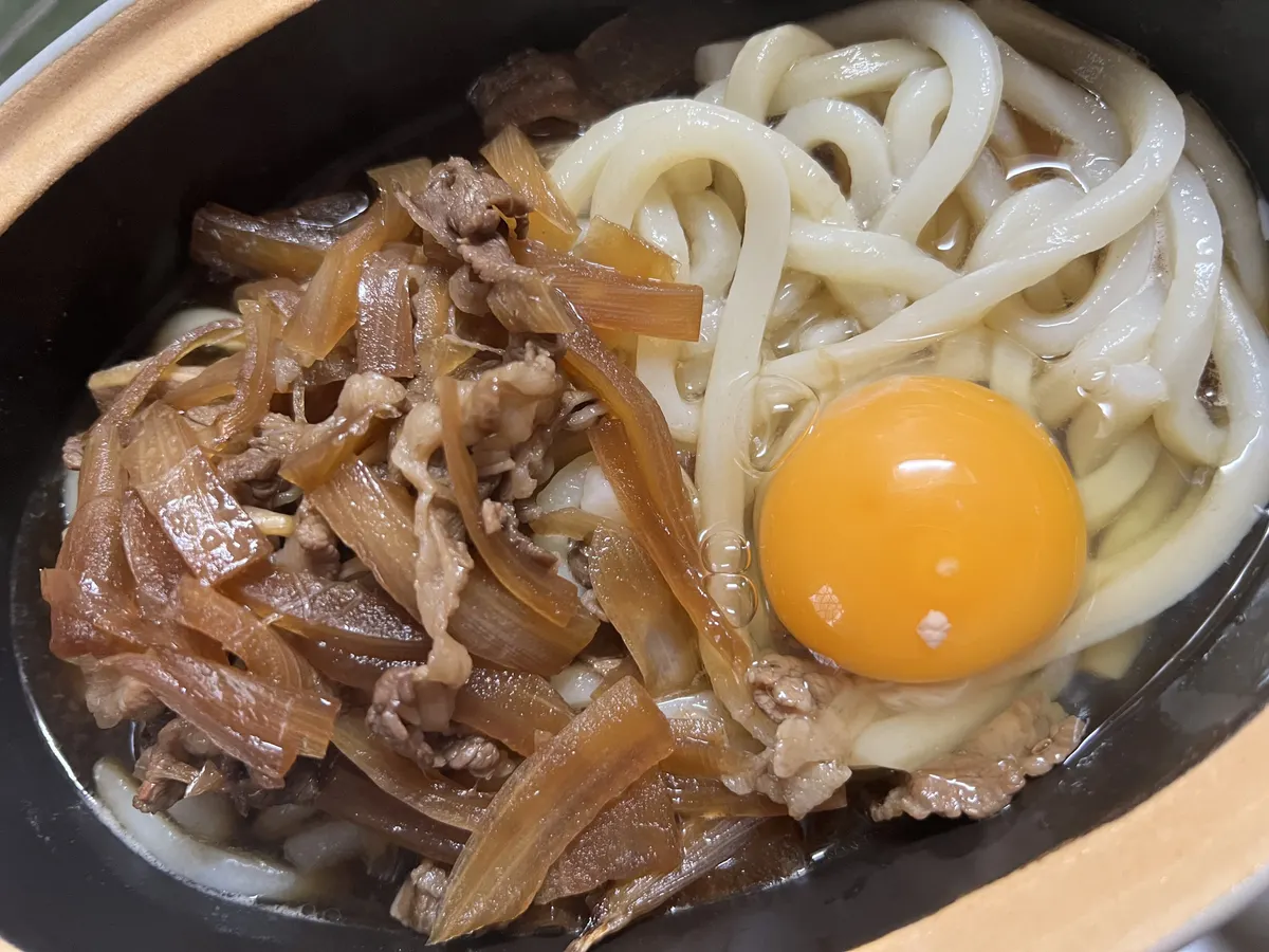 投稿を表示牛丼の具がうどんに絡んで美味しそうですね✨