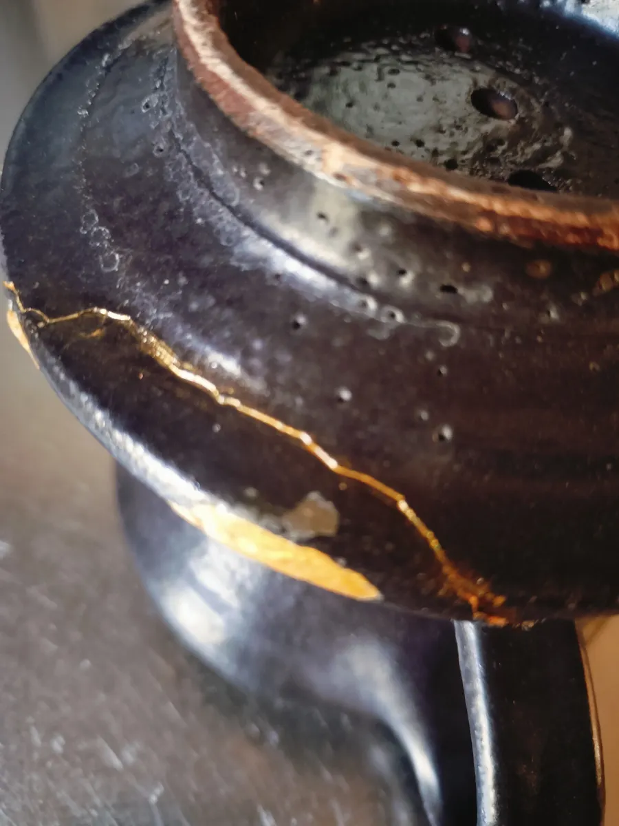 投稿を表示私が持ってる皿は割れたら捨てても惜しくないようなものばかりですが、きょろっちさんのコーヒードリッパーは金継ぎが似合いますね😍
