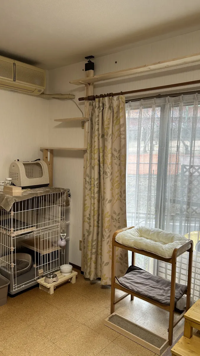 トップ > にゃん祭りDIY2026 > キャンペーン > 新入りさんのためのステップ Toko 2026/02/20 20:38 新入りさんのためのステップ ■作品内容 ・キャットステップ ■作品のこだわりポイント ・新入りの猫のために新たにステップ。 高いところが好きそうなので、天井近くにお昼寝できる場所、カーテンレールの上も歩けるようにしました。今後さらに伸ばして、本棚の上に降りたり、そこからソファー〜床に降りられるようにする予定です。 ・使ってなくて処分予定だったワゴンも、お昼寝用ベッドに変身。今までに作った作品もステップとして活躍しています。 インテリア部門【にゃん祭りDIY2026】 いいね 共有する 共有する X LINE リンクをコピー コメントする 0 件の返信 (新着順)