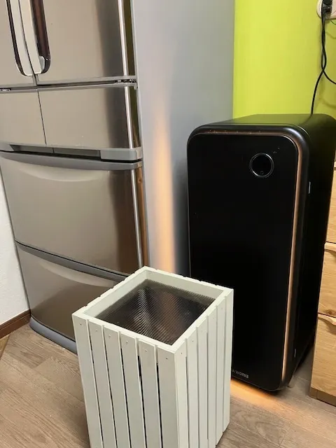 帰宅後、確認したら、ごみ箱とトラッシュカバーとの上部空間が開いてしまうことに気が付いた。