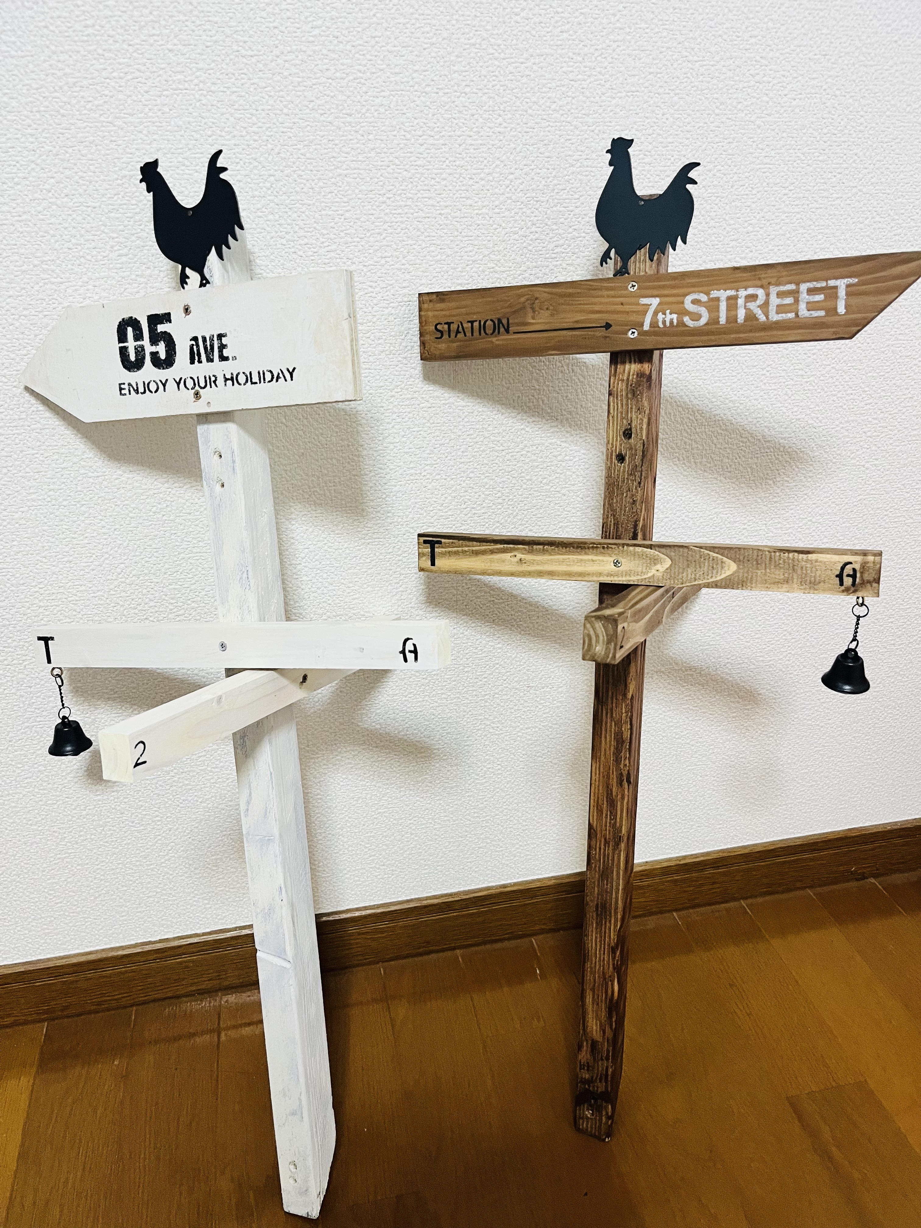 脚は四本あってドラム内に一本入ってて、残り3本のしっかりした白木があったので、風見鶏ガーデンピックを作りました。