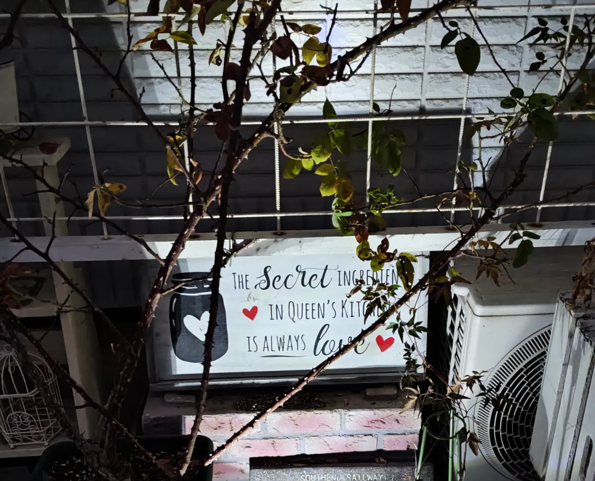 バラとの相性もお見事です✨咲かない時期でも、サインボードがあるとお庭を華やかにしてくれますね🥰✨