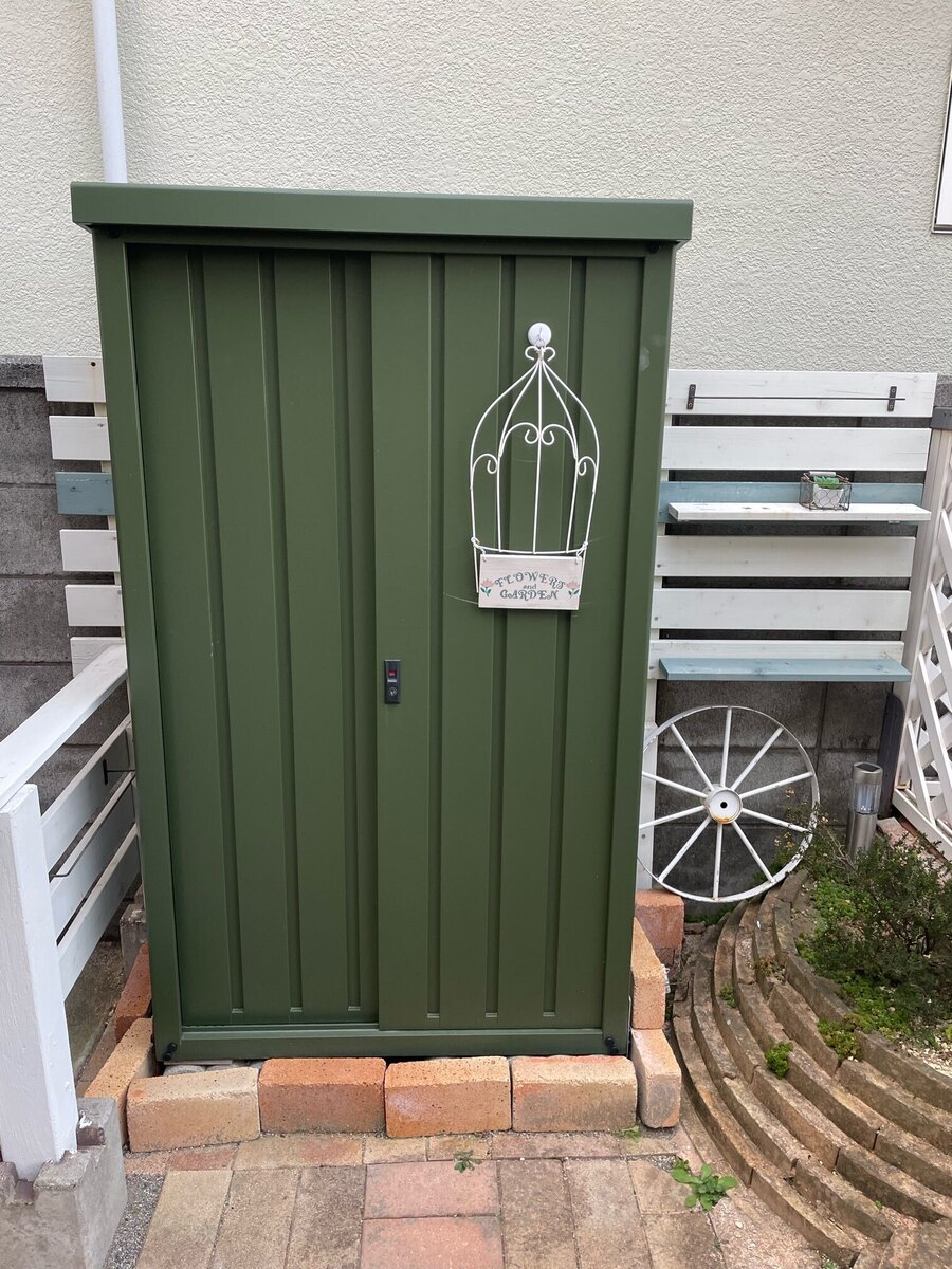 物置の周りも可愛くされていて、レンガが段になってるの凄い🏡