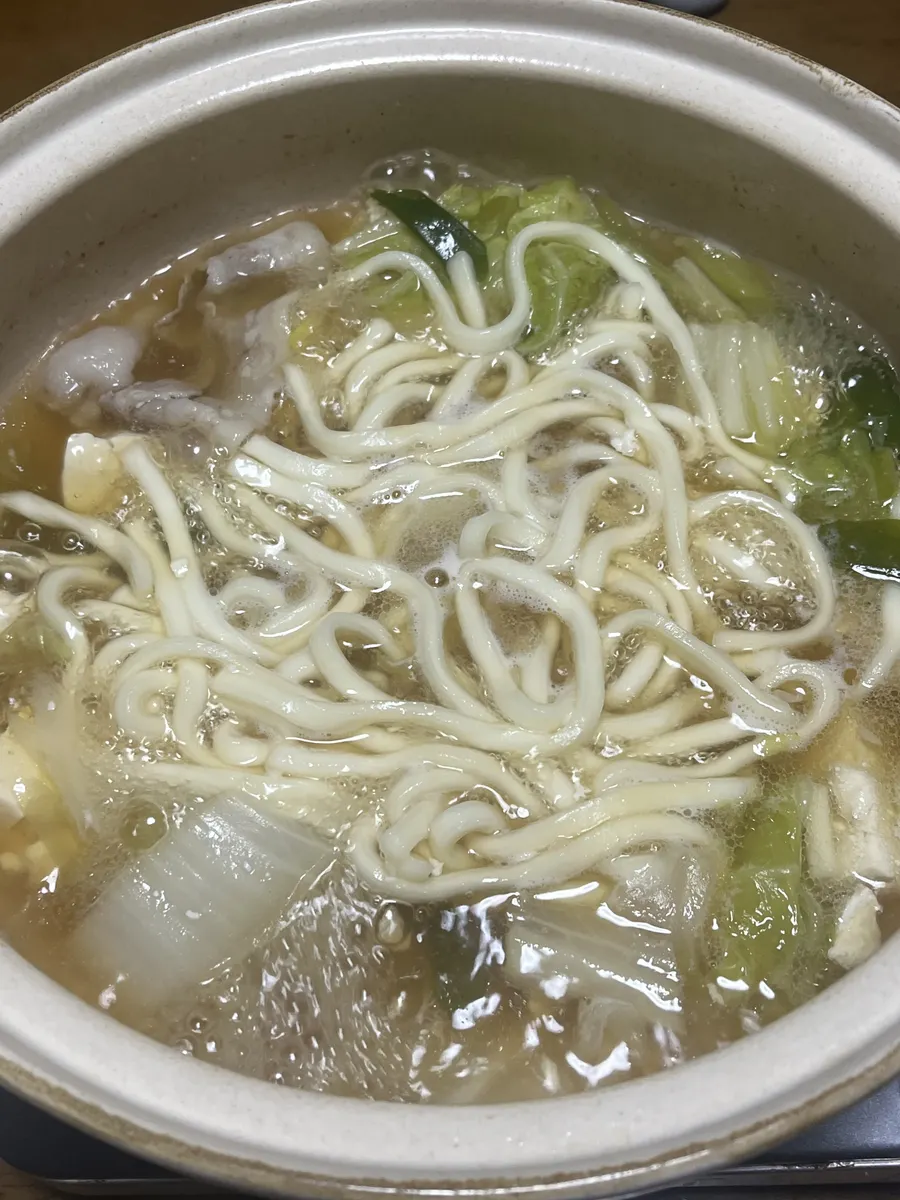 べるんさん、ありがとうございます😊いつもの鍋の感じになってしまいました いわゆる湯豆腐の後に釜揚げうどんのようにして食べたかったんです