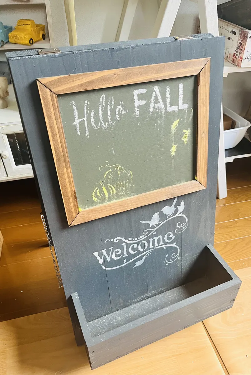 黒板をそーっと剥がして、黒板部分は壁に飾ってあります。