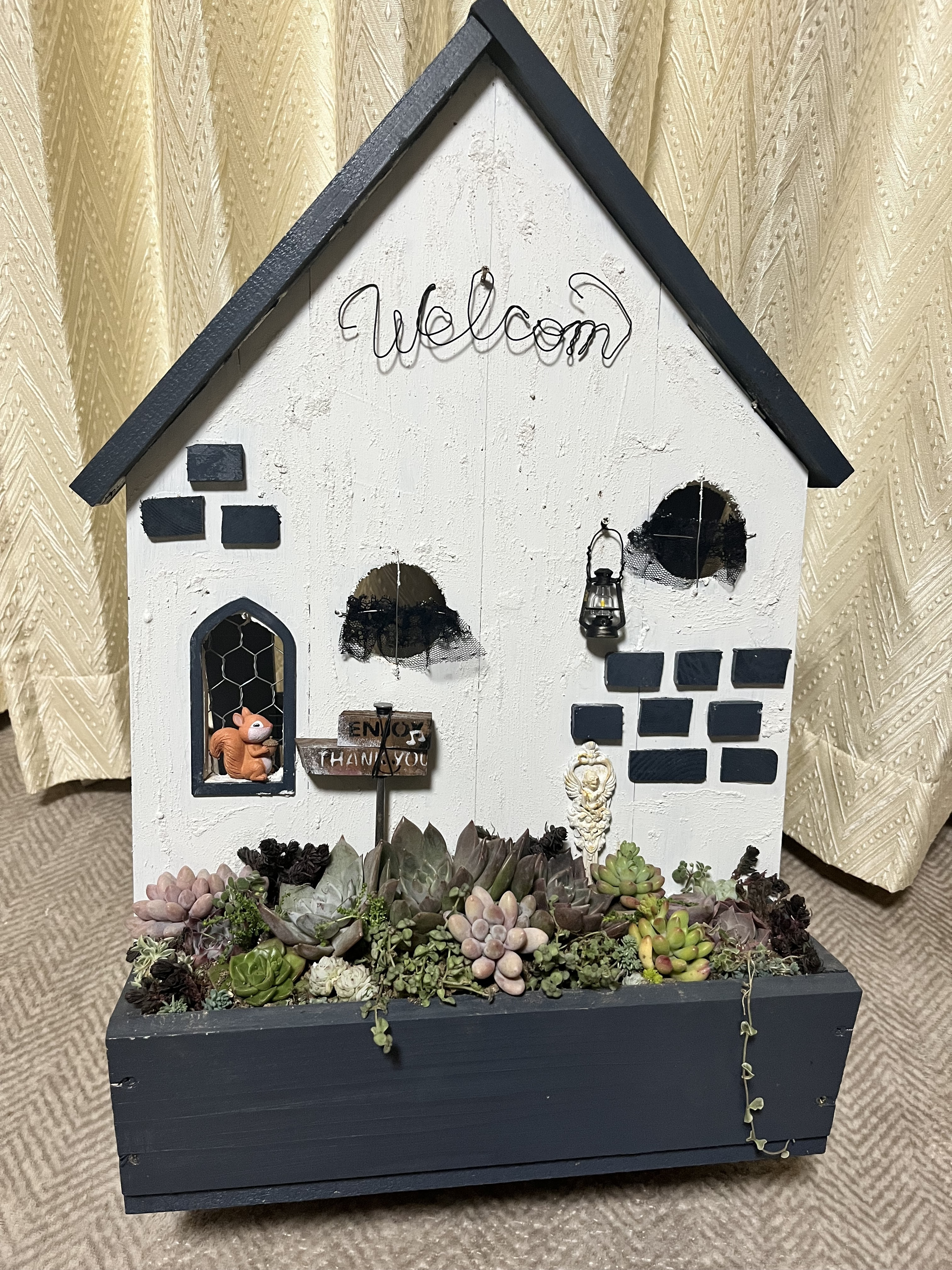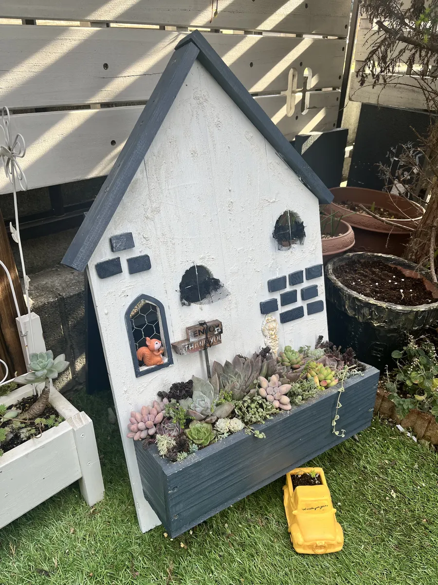 お家形で多肉ちゃんの寄せ植えも可愛らしい😌🌸💕