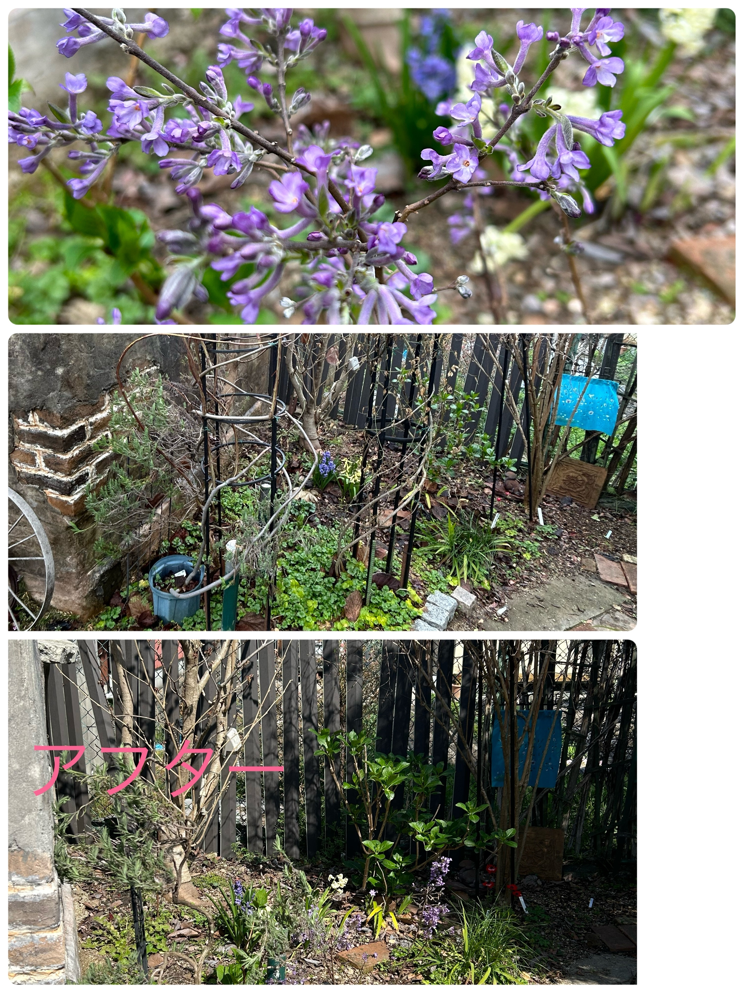 トップ > グリーン > アフターの後に移植した丁子桜 亜月 2024/04/01 10:12 アフターの後に移植した丁子桜 へとへとになって、頑張った昨日。コッツウォルズ小屋の右にあった、二つの蔓性の藤とカズラを撤去したのち、土を新しく客土してから、旅行先の吉野山で見つけた、丁子桜🌸をうえつけしました。 パープルの優しい小花の桜で、背丈もあまり伸びません。 この場所の方が日当たりが良くて、きっと逞しく成長してくれることを期待しています。👀🥰 亜月のガーデン物語り🪴 いいね 共有する 共有する X LINE リンクをコピー コメントする 0 件の返信 (新着順)