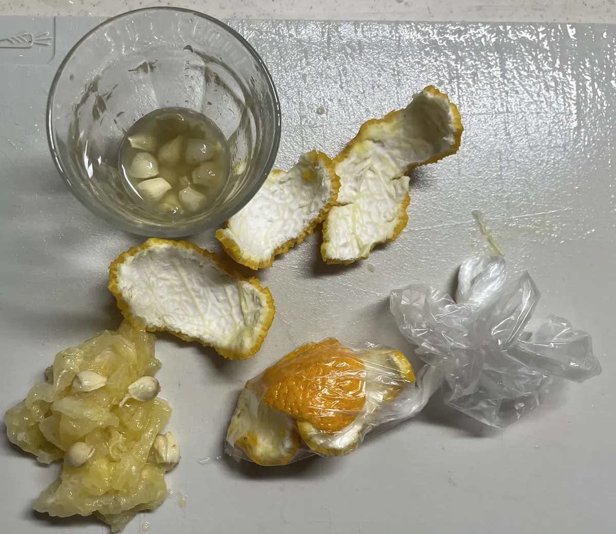 ・お漬物に使うのは皮の部分だけだけど、中の実も果汁も充分何かに使えるよなぁ〜😁👍🍊✨