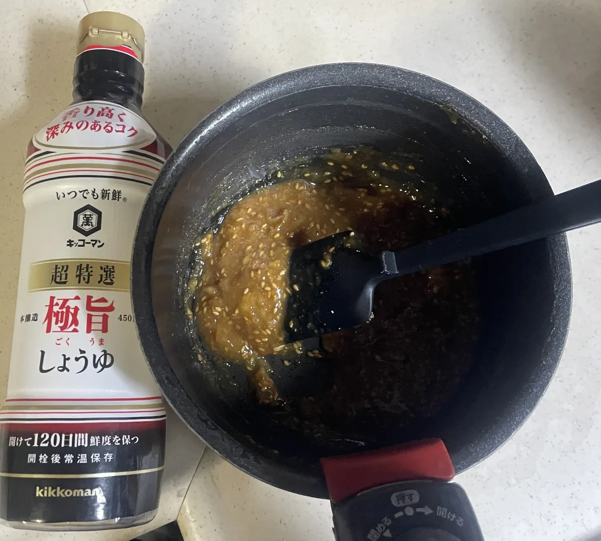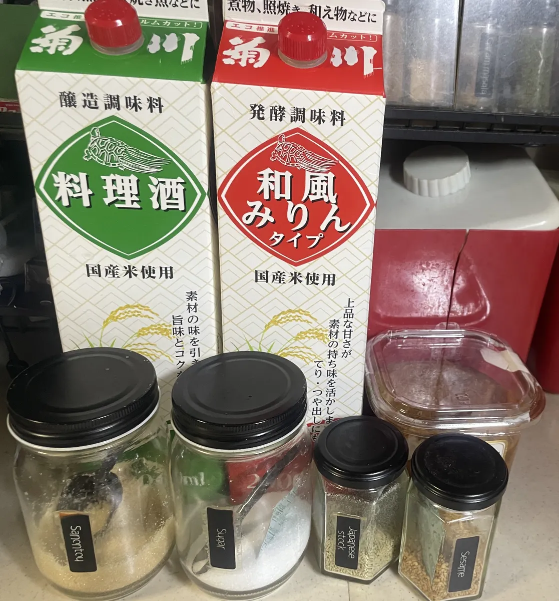 ①酒・味醂・味噌・三温糖・味の素・和風顆粒出汁(昆布)・金胡麻✨