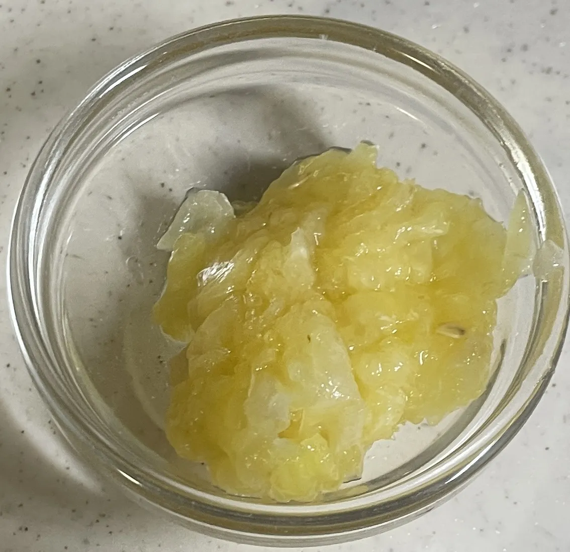 お漬物に使った皮以外も食べれるよねってんで、取り敢えず種を取り除いて果汁を絞った薄皮付き果肉と果汁に分けてみたのだがぁ〜🍊👀✨
