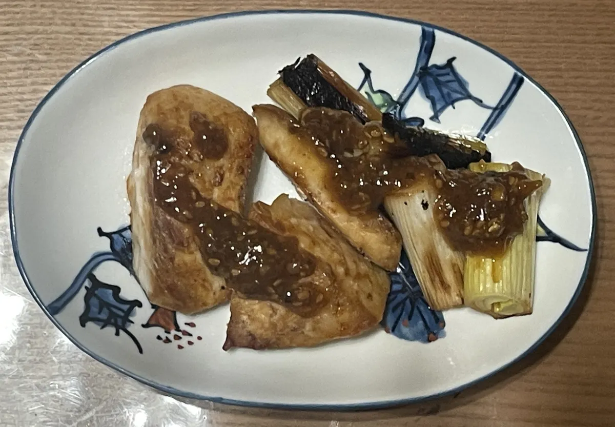 別日には半額カジキマグロGETしといたのと&焼き葱に掛けてみたりぃ〜🤣🙌🐟🉐✨