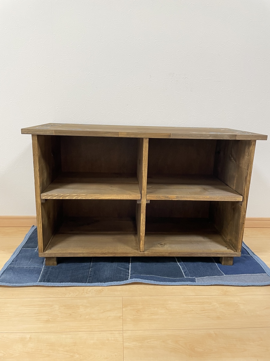 デニムパッチワークのマットもローシェルフにマッチしていてお洒落です✨