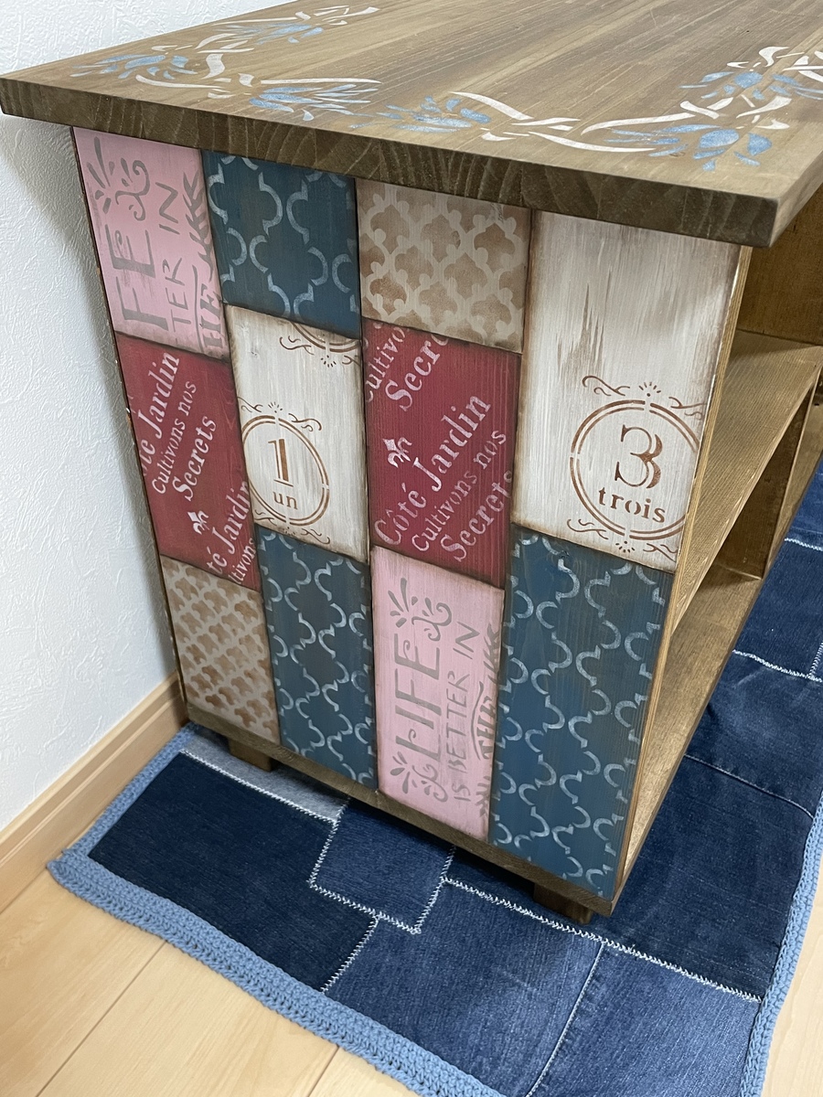 投稿を表示木製DIYの塗装アレンジのパッチワーク❣️