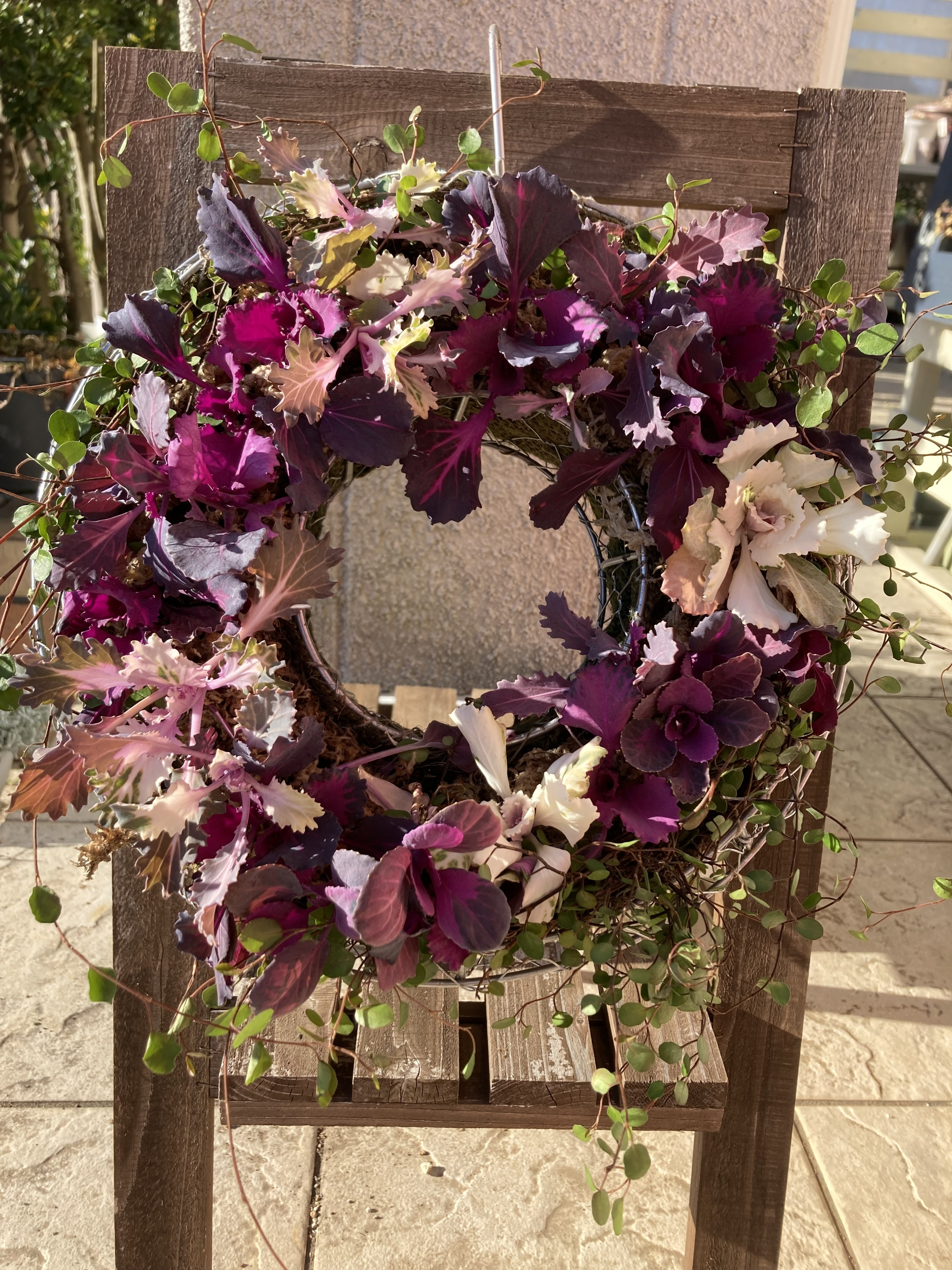 投稿を表示種から育てた葉牡丹なので、より可愛いさがましますね💘色合いもとても素敵なリースです✨🌿🌹。(◕ᴗ◕✿)