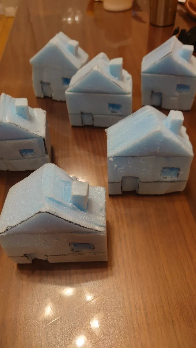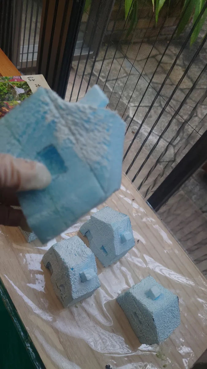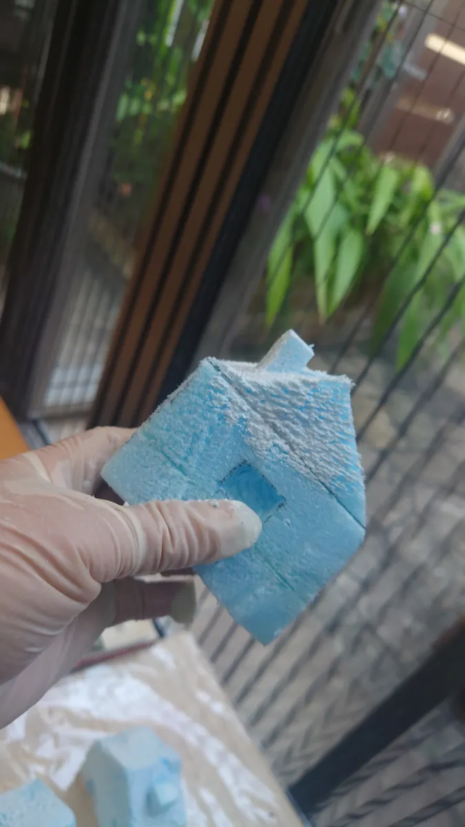 3色微妙に色変えて塗るんだよと言っでたのですが、こんなにはっきりした感じになりました(笑)まるでお菓子の家のようになって
