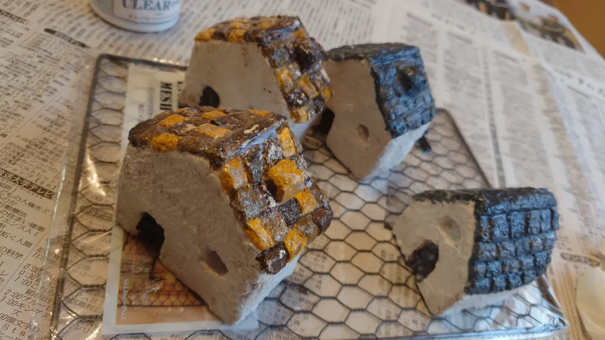 瓦を色塗りしていた時 途中用事で出かけないといけなくて 塗料がカピカピになるからと続き
