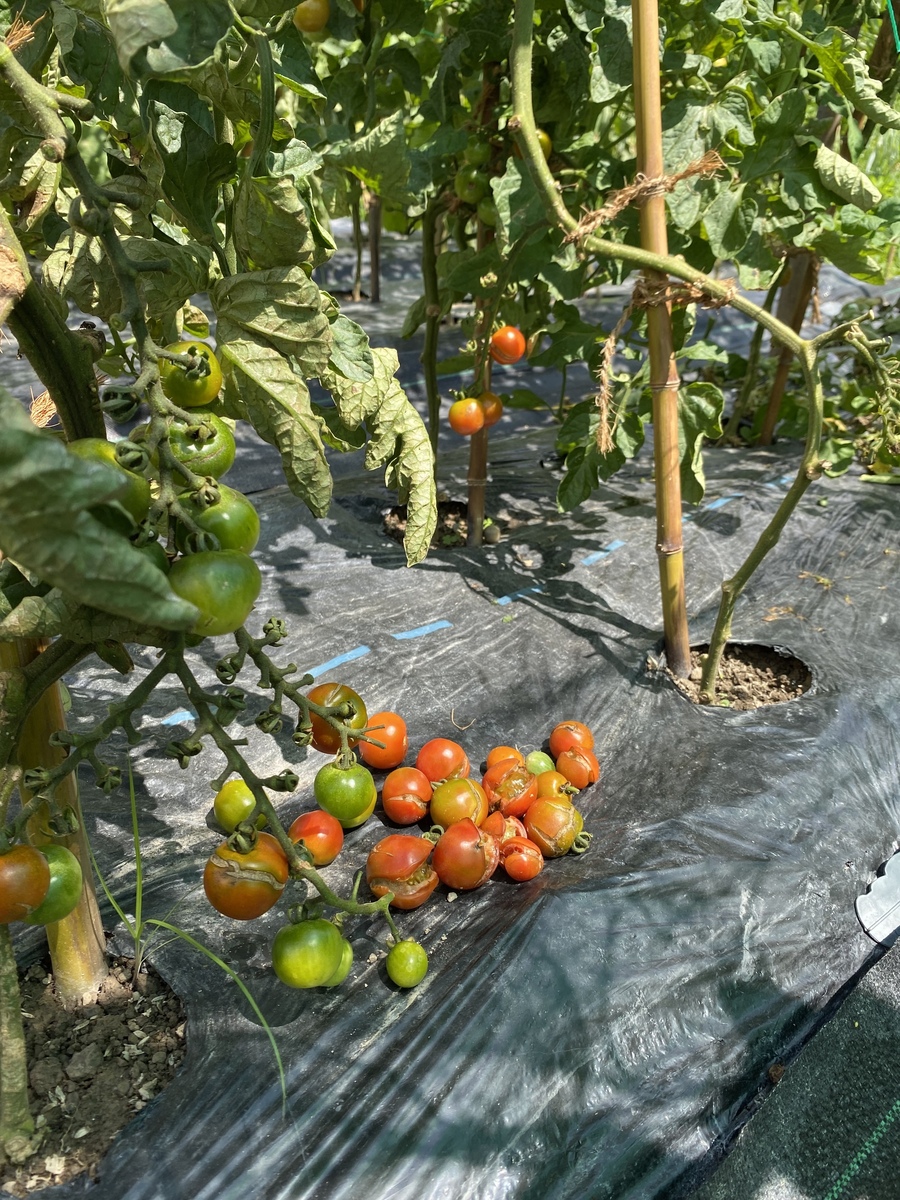 私も割れる前にプランターに植えてあるトマト、収穫して来まーす。