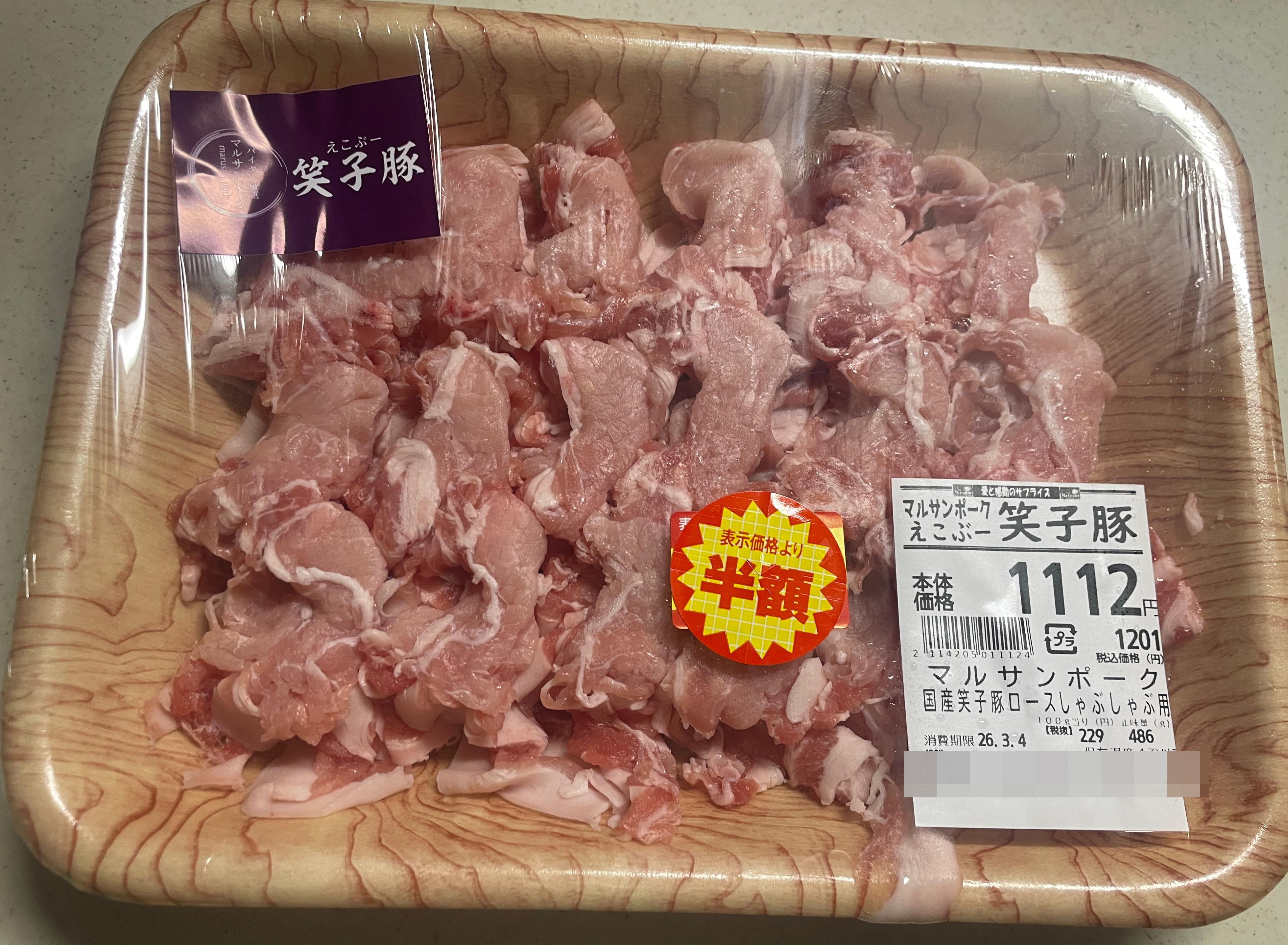 2回目はお買得品国産豚ロースしゃぶしゃぶ用(半額)使ってぇ〜😁👍🐖🥩🉐✨