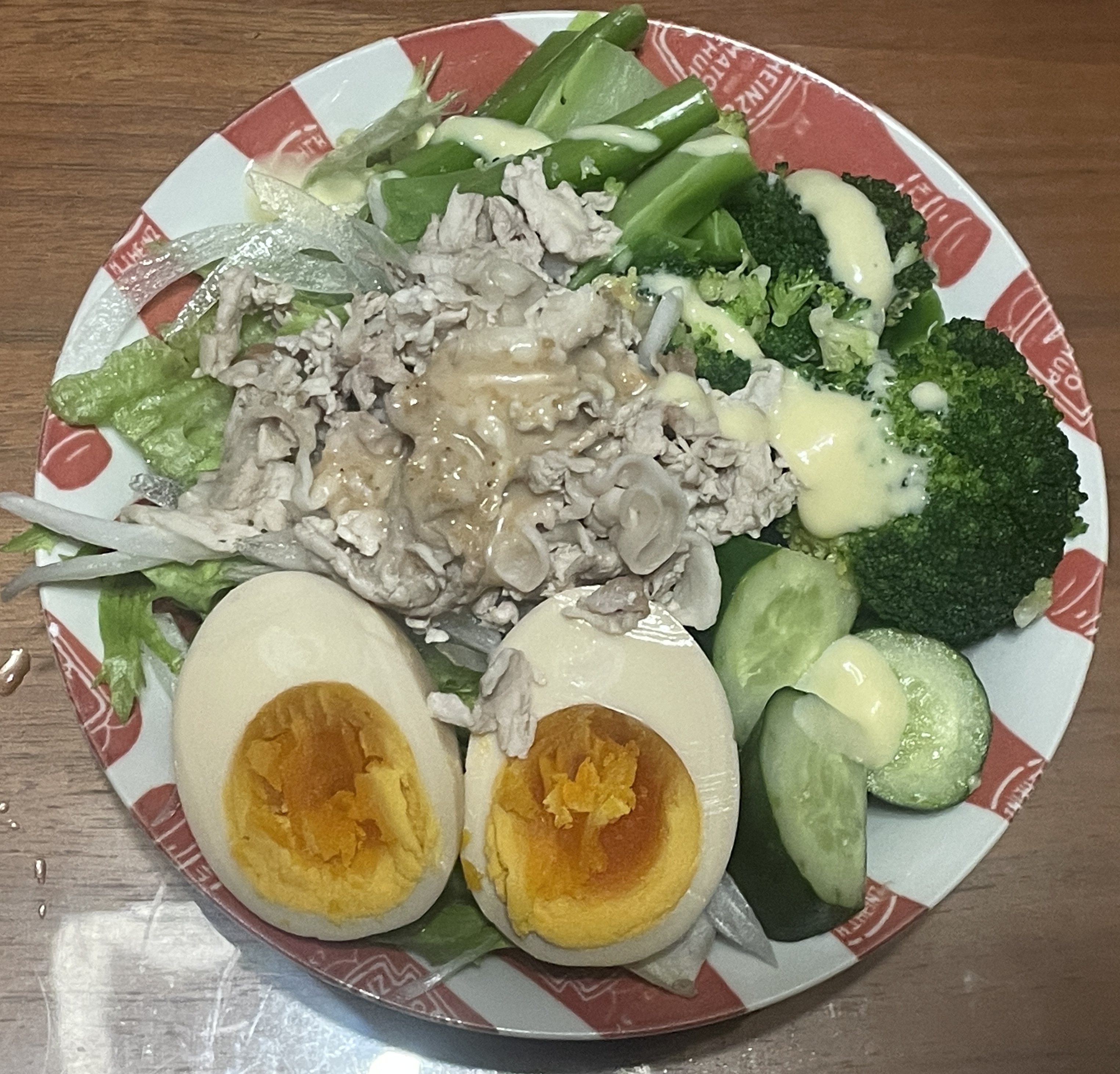 3回目も前日の冷しゃぶサラダの残りと味玉プラスで同じく食べたぁ〜😋🗓️🐖🥩🥗✨