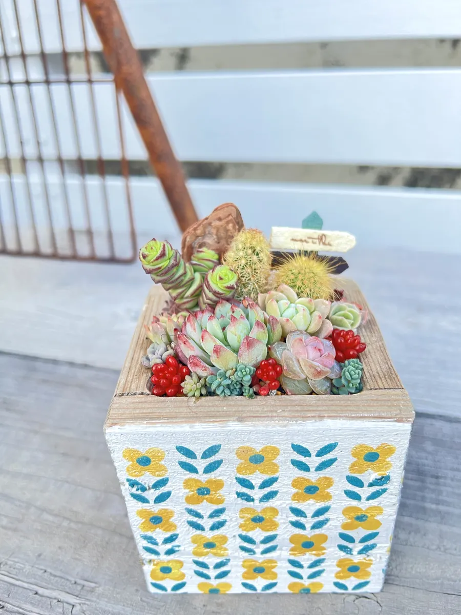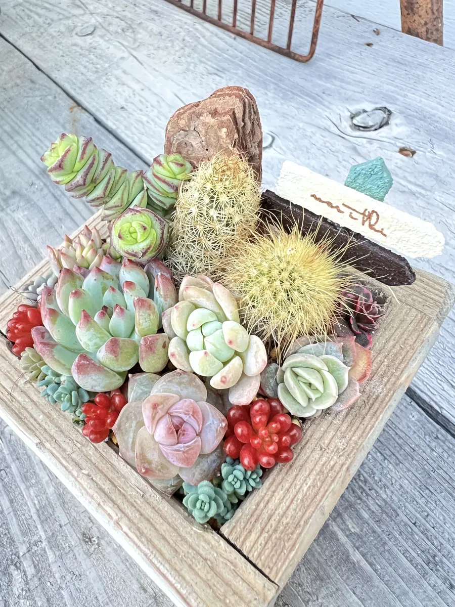 木箱にサボテン🌵と多肉は合いますね〜☺️