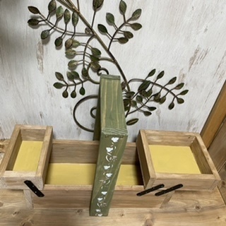ほんとはもっとカラフルに仕上げようと思ってタンだけど、底板にだけミルクペイントのミモザイエローでアクセント