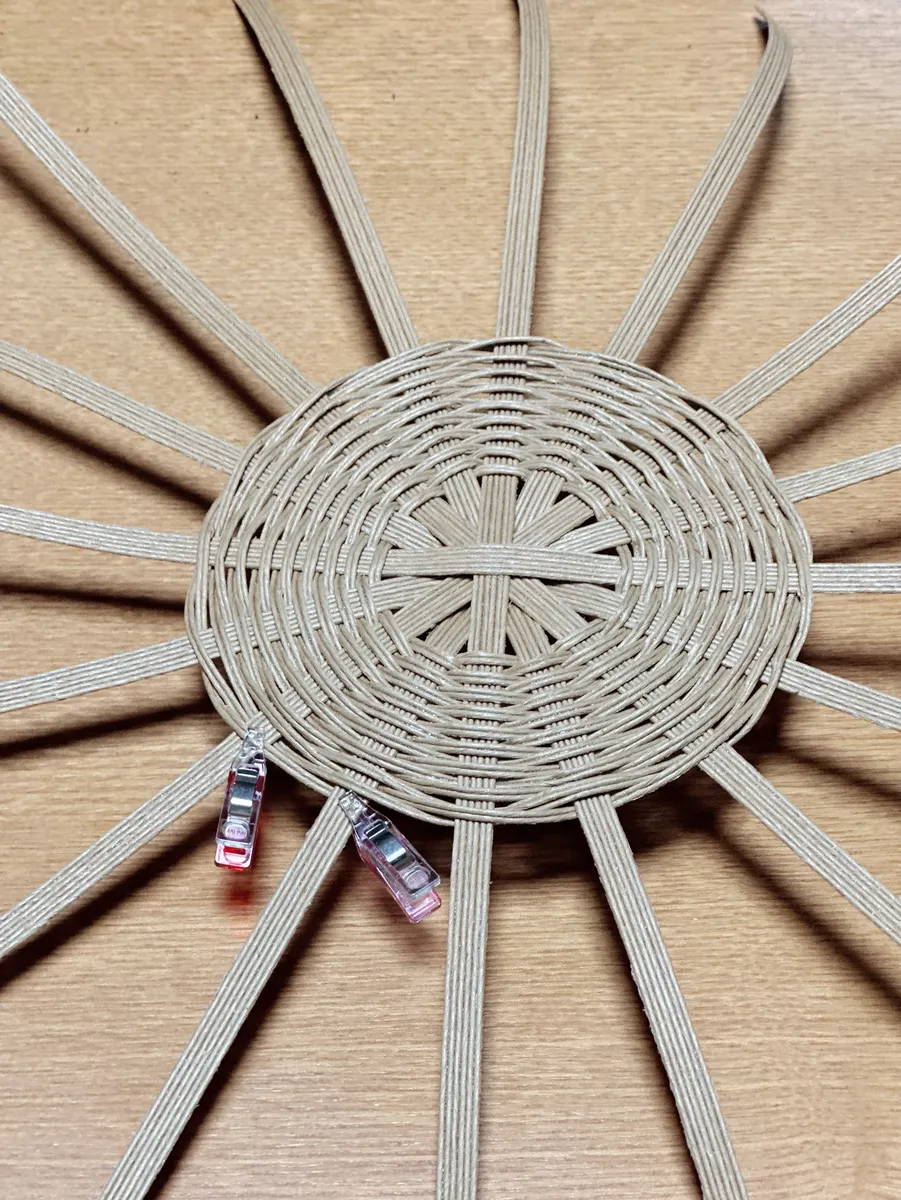 押し入れから数年前に買ったクラフトテープで作るカゴのキットを発掘したので挑戦中なのですが