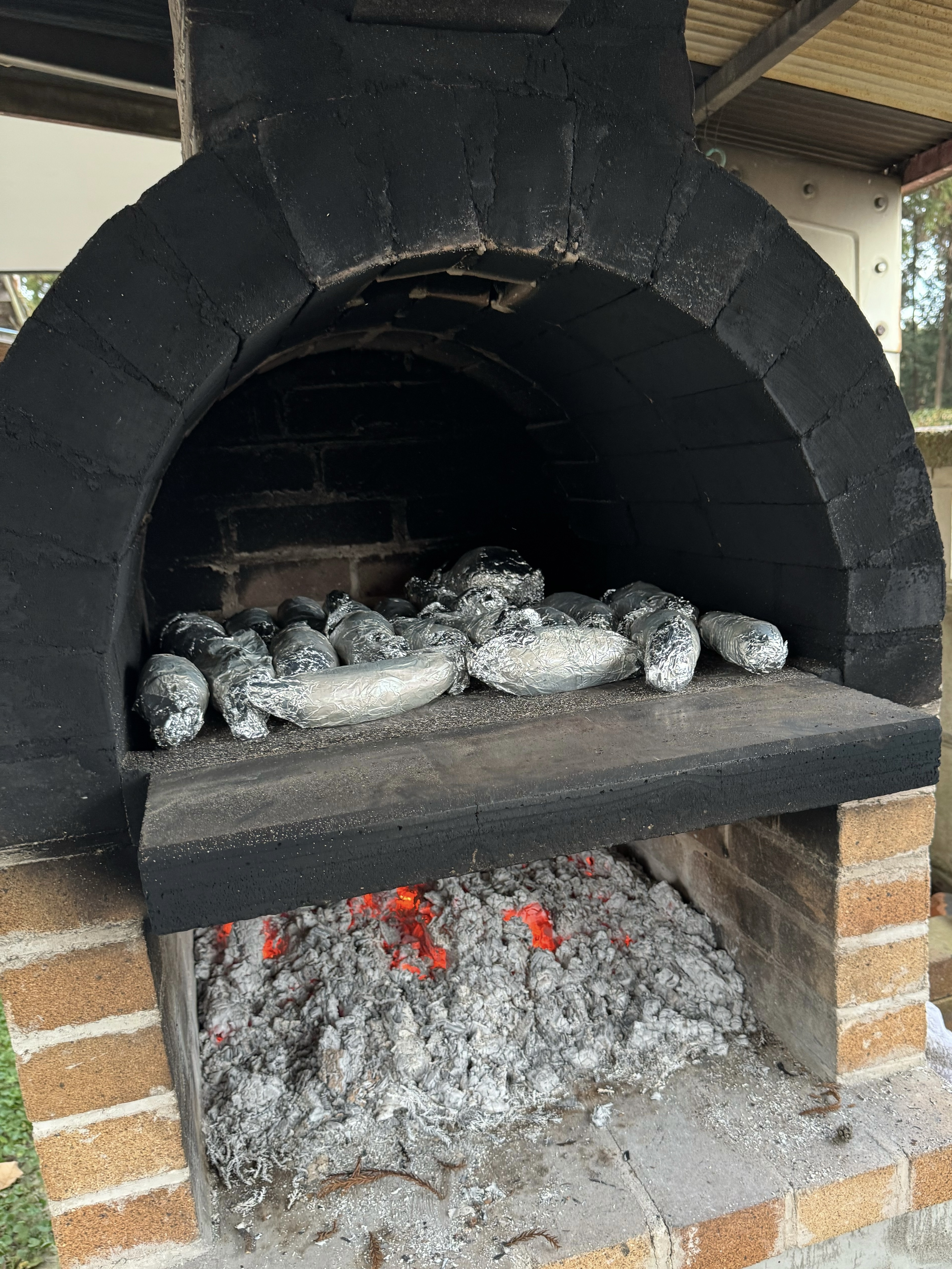 投稿を表示いいなぁ、ピザ窯で焼き芋🍠蜜がいっぱい出てて、美味しそう😋
