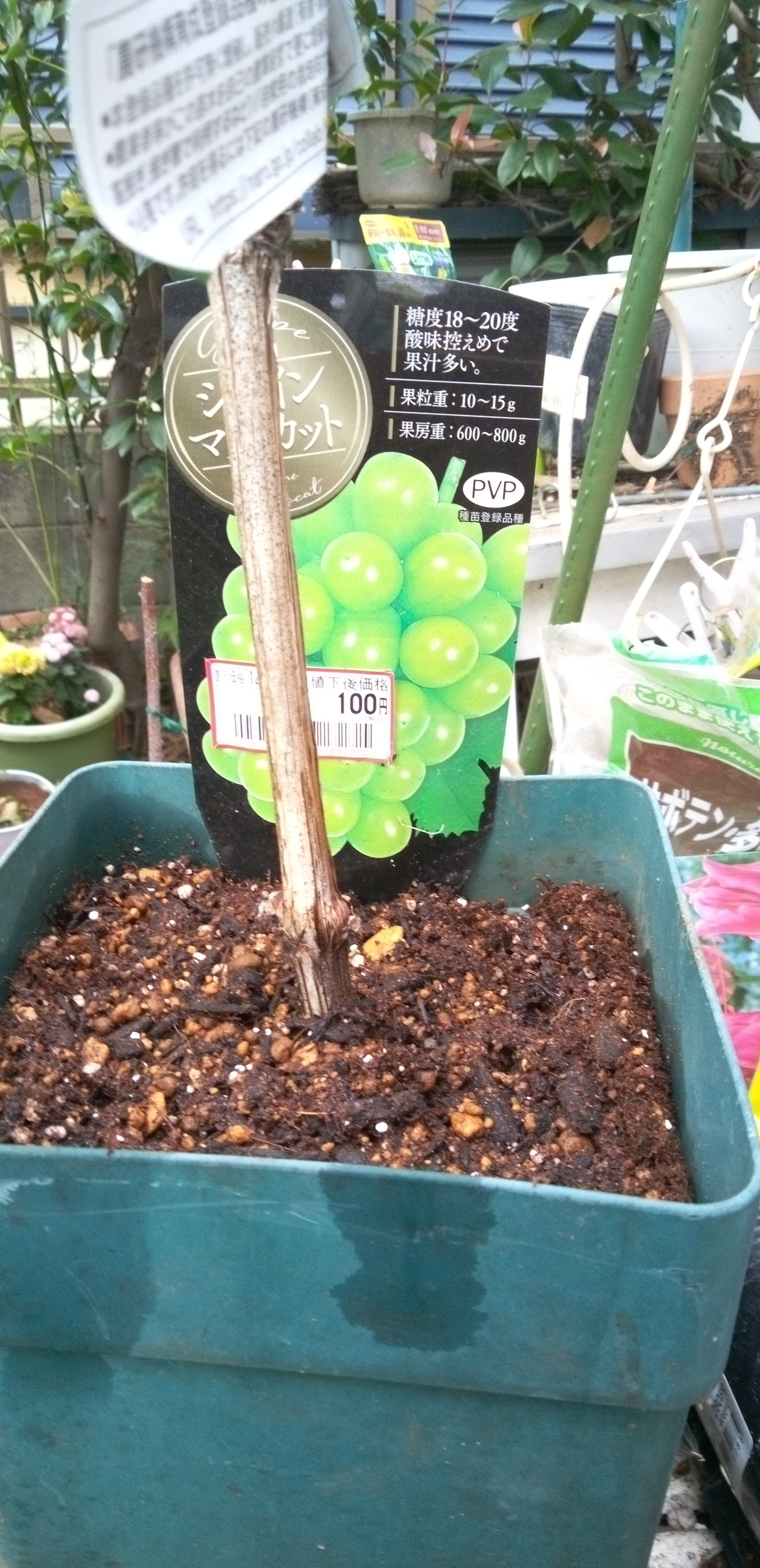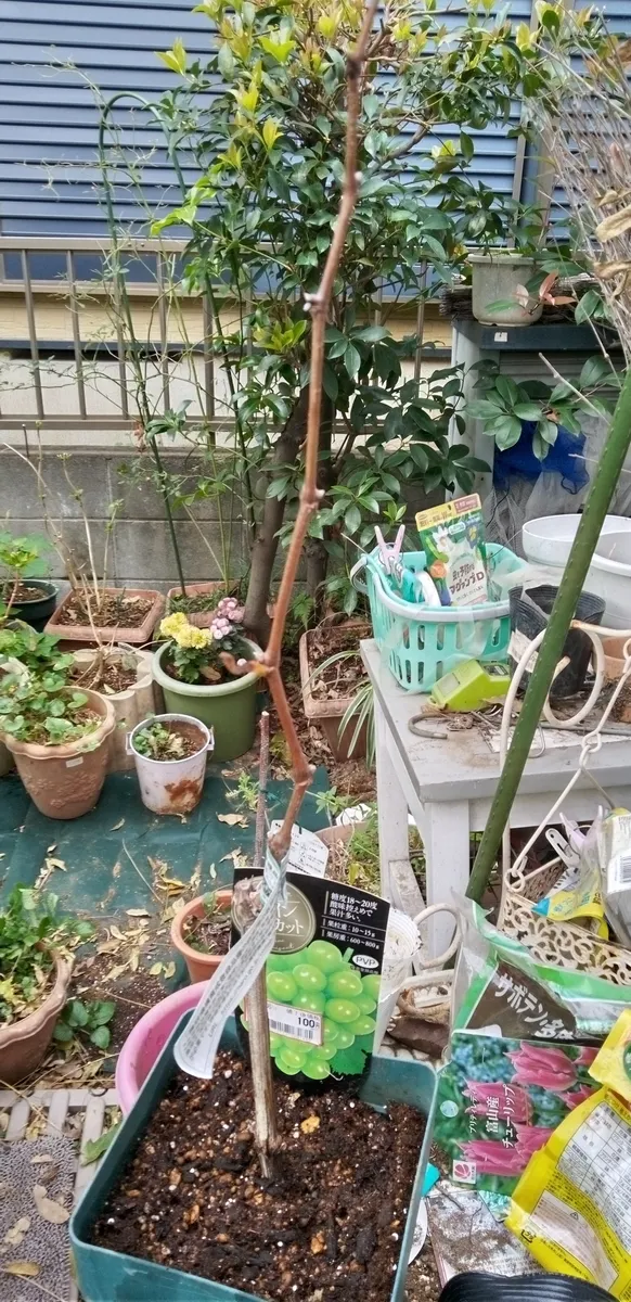 投稿を表示高級ブドウの苗が100円、嬉しくなりますね。立派な木に育ちます様に。甘い1房が採れたら大満足ですね。ブドウのお花ってどんなの咲くのだろう?投稿楽しみです。 🙇
