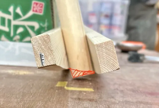 差し金で脚の開き具合を測りながら4本とも止めたら
