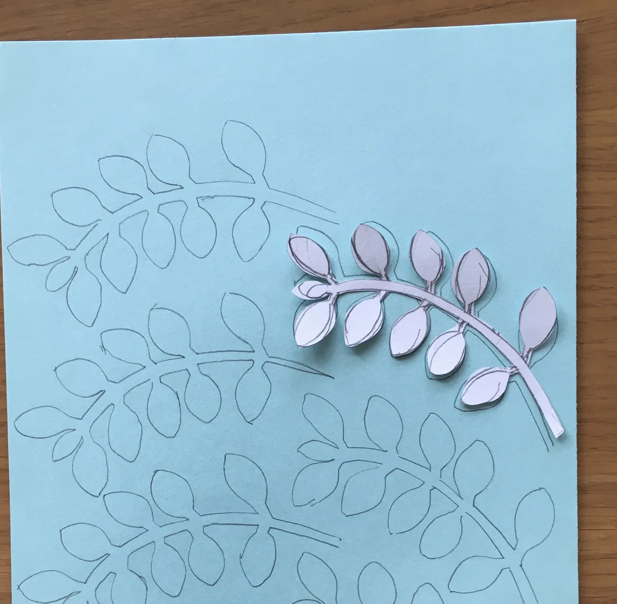 花や葉っぱなど手書きで原紙を書き画用紙に移して切っていきます。