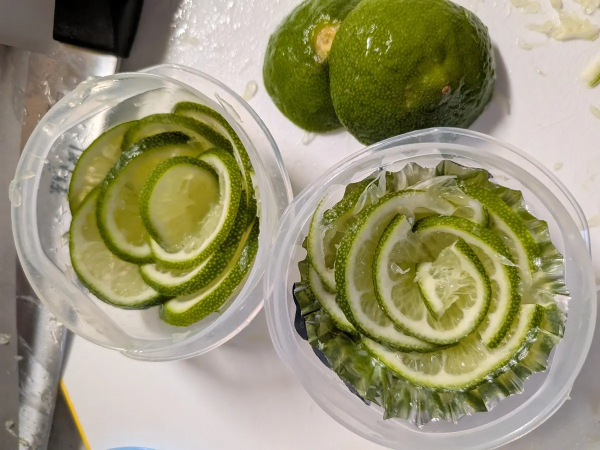 ・ライムを薄切りにして、小さいカップに花びらのようにのせる