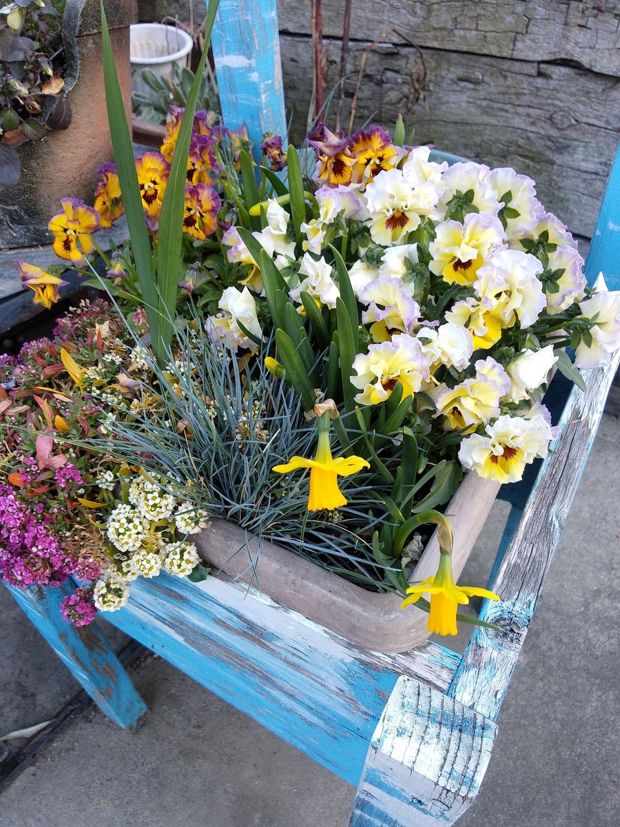 人工芝とメダカ鉢の手入れで、なかなか新しい寄せ植えが作れません。