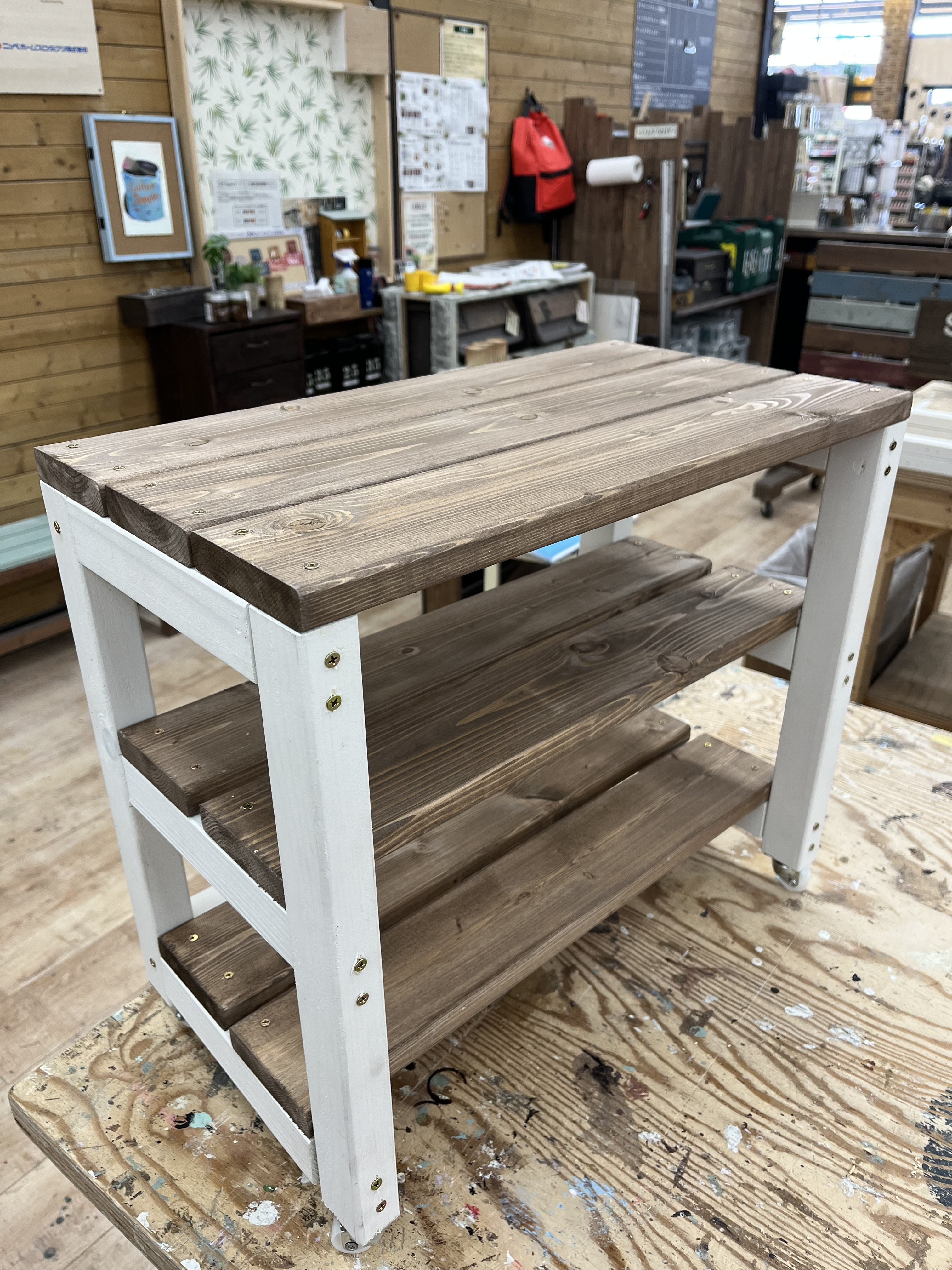 木目が綺麗にでてますね✨キャスター付き、私も作ってみたいです。