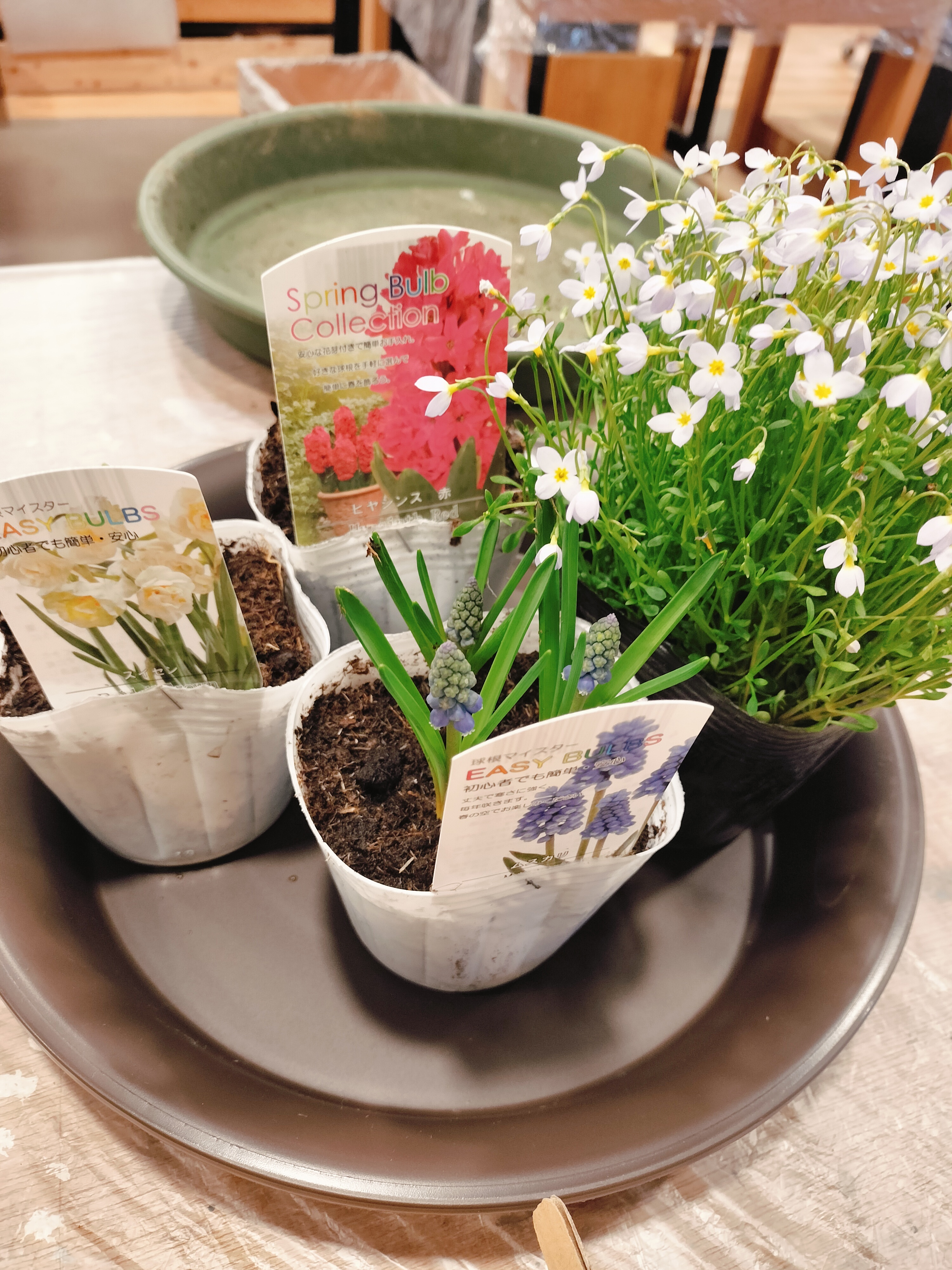 トップ > ワークショップ > その他 > 春🌸を待つ芽出し球根のアンティーク寄せ植え きょろっち 2026/02/25 15:33 春🌸を待つ芽出し球根のアンティーク寄せ植え 久しぶりのGWSでした😆 悪天候の中、プチ遠征😅 WS直後🥰 ヒヤシンス、ムスカリ、スイセン、ヒナソウ 水仙のブライダルクラウンという品種、お初です。八重咲水仙です。 荒れた天気なので今日は室内で養成します。 投稿入力の仕方、変わりましたね。すごく画像を挿入するのが入れずらいです…😭 いいね 共有する 共有する X LINE リンクをコピー コメントする 2 件の返信 (新着順) ミュートしたユーザーの投稿です。 投稿を表示 mi 2026/02/25 21:59 このWSいいですね〜😆 羨ましいです💦 いいね 返信する ミュートしたユーザーの投稿です。 投稿を表示 べるん 2026/02/25 17:36 きょろっちさん 投稿準備や、悪天候のプチ遠征お疲れ様でした❣️ ヒナソウのお花が華やかで、とっても綺麗ですね✨ ヒヤシンスやムスカリ、スイセンのお花が咲くと、より、素敵になりますね。楽しみですね💞 いいね 返信する ミュートしたユーザーの投稿です。 投稿を表示 きょろっち 2026/02/25 20:33 べるん べるんさん コメントありがとうございます💕 天気が大荒れ、強風で車の運転に気をつけながらプチ遠征しました😰 あっという間の寄せ植え作業時間30分😂 ヒナソウも初めましてなので球根が咲き揃ったらと今からとても楽しみです🎵 投稿画面、戻って良かったですね🤭 いいね 返信する ミュートしたユーザーの投稿です。 投稿を表示 べるん 2026/02/26 08:36 きょろっち 投稿画面 戻って一安心ですね🤭 いいね 返信する
