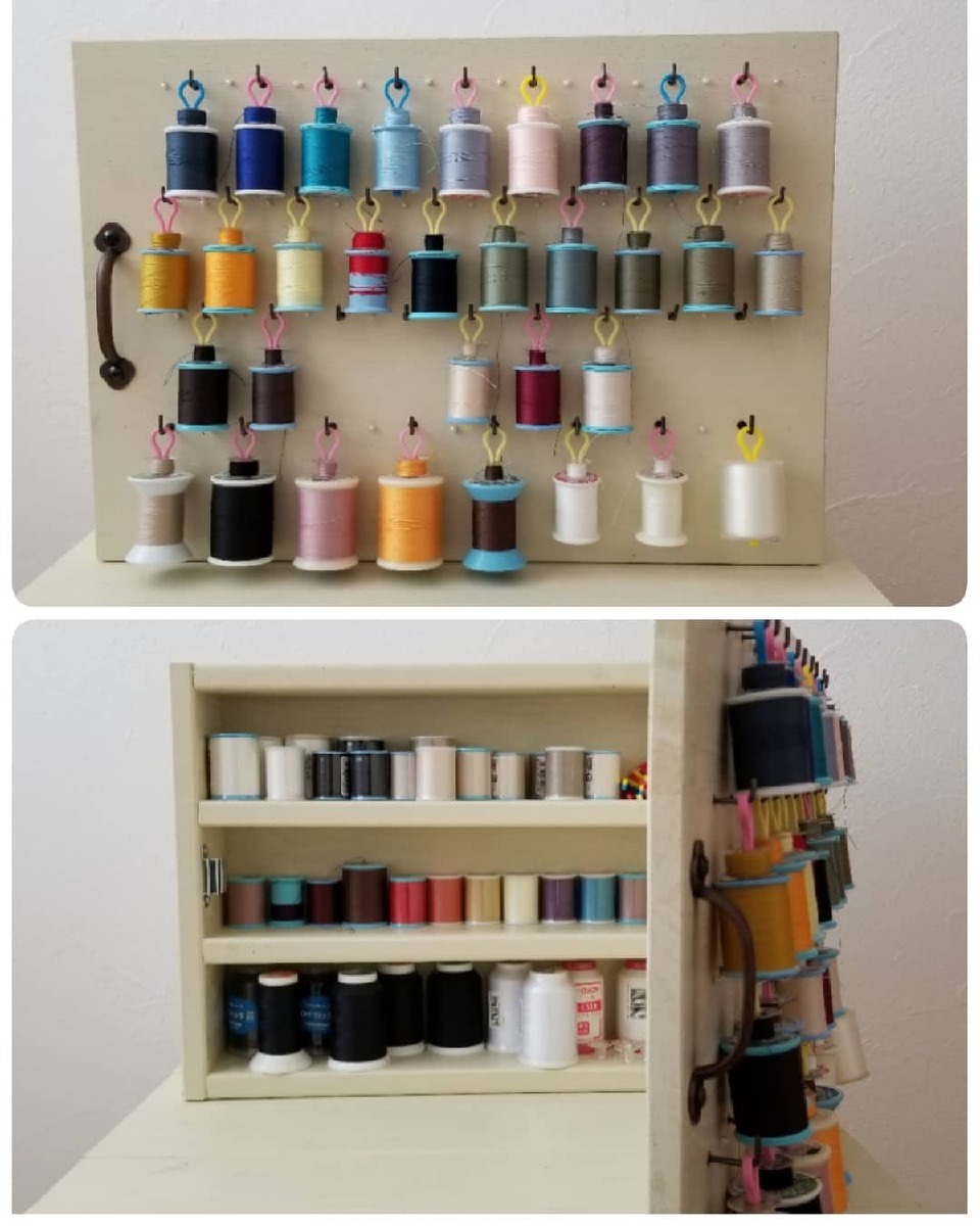トップ > その他 > ミシン糸収納BOX エル 2022/10/31 14:56 ミシン糸収納BOX 過去作品です。 増えてしまったミシン糸を使いやすく収納したくて、いつもお世話になっているスタッフさんに相談にのっていただきました。 見せる収納。 取っ手を引くと3段棚。 ストックやあまり出番のない色の糸を入れています。 使い始めると、壁に取り付けたほうが使いやすいと気づいたので、上部に取っ手と壁にかけるように三角吊りカンをつけました。 おかげでミシン糸の付替えがとっても楽になりました♫ いいね 共有する 共有する X LINE リンクをコピー コメントする 3 件の返信 (新着順) ミュートしたユーザーの投稿です。 投稿を表示 みんと 2022/11/02 19:35 エルさん これは素晴らしいですね✨ ミシン糸とボビンもセットになっているから、すぐにさがせますね。 いいね 返信する ミュートしたユーザーの投稿です。 投稿を表示 エル 2022/11/06 12:21 おそくなりました。 コメントありがとうございます! ミシン糸探しがとっても早くなりました😆 いいね 返信する ミュートしたユーザーの投稿です。 投稿を表示 シン ひよっこ 葵 2022/10/31 20:02 エルさん、すばらしいです これはとてもお役立ち o(・ω・´o) いいね 返信する ミュートしたユーザーの投稿です。 投稿を表示 エル 2022/10/31 20:54 ありがとうございます。ほんと、重宝しています!探す手間もなくなりました! いいね 返信する ミュートしたユーザーの投稿です。 投稿を表示 ホームズ 2022/10/31 17:11 エルさん すごいです😱💦 ミシン糸の上に、ボビンが乗っているんですね😱👍 両方、一緒に使いますもんね🤗👍 すごいアイデアです😂👍 ボビン糸、探す手間が〜😱 他の糸と絡まって〜とか、あるあるです😂 これは、便利です🥰👍 中の3段の収納も、いいですね🤗 ところで、ミシン糸とボビンのなかは、何を通しているんですか? いいね 返信する ミュートしたユーザーの投稿です。 投稿を表示 エル 2022/10/31 20:52 ボビンを通しているのは、ダイソーの手芸コーナーでで売ってますよ〜!ボビンとミシン糸を一緒に収納できる道具てす。3色2個ずつの6個入りだった気がします。オススメです! いいね 返信する ミュートしたユーザーの投稿です。 投稿を表示 ホームズ 2022/10/31 22:57 エルさん ありがとうございます🥰 ダイソー、すごいですねー😱💦 今度、行った時、見てみます🤗 いいね 返信する