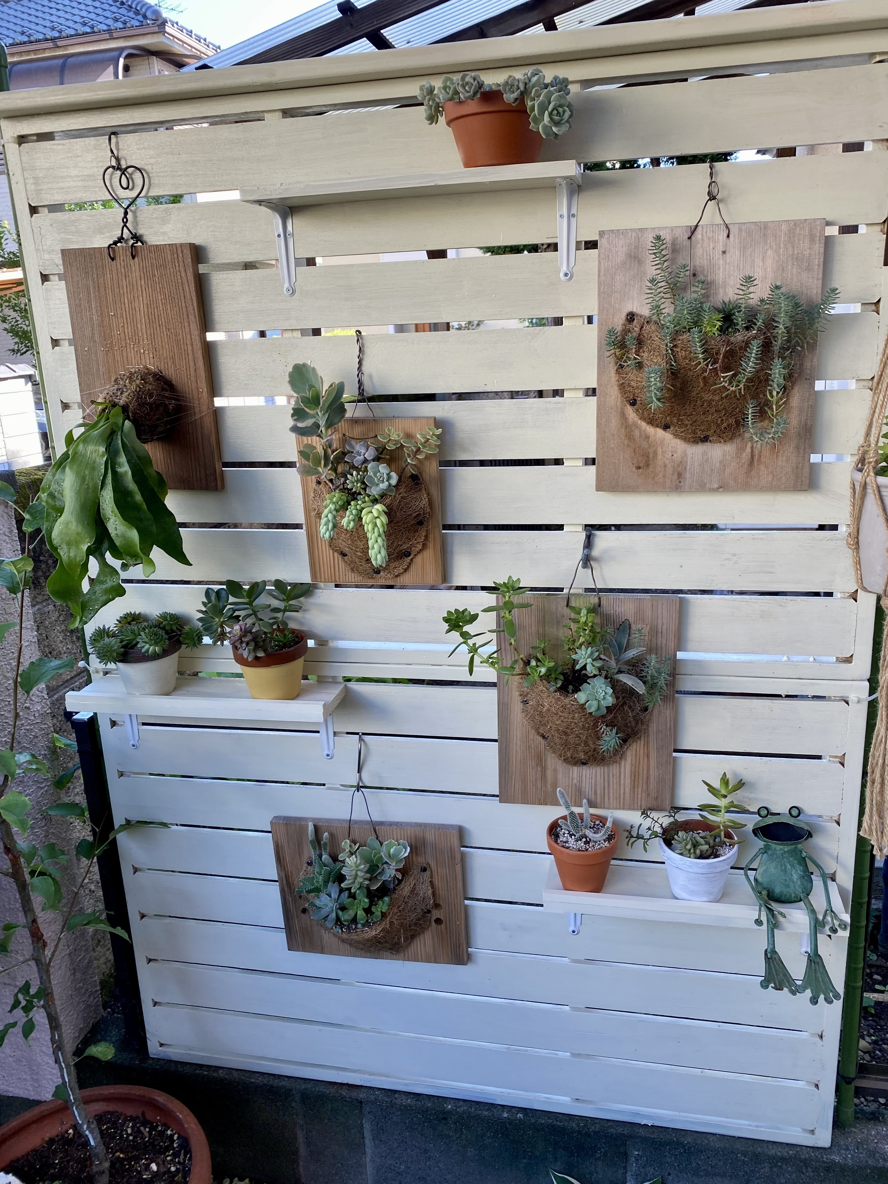 トップ > その他 > 夏のDIY2022「すのこから多肉ウォール」 Toko 2022/08/19 08:33 夏のDIY2022「すのこから多肉ウォール」 20年近く押入れで眠っていた敷布団用のすのこ、木製だし、何かに使えないか?…と捨てずに取ってありました。 折りたたみ用の金具を外し、3分の2と3分の1の2つに分け、大きい方に塗装して、多肉をかけたり置いたりできるウォールにしてみました。玄関先のお隣との境に設置、フェンスも兼ねています。 冬は全く陽の当たらない場所なので、色は明るくバニラを選びました。 少しは雨にも対応できるよう(気持ちだけかなー)小さな日差しもつけました。 いいね 共有する 共有する X LINE リンクをコピー コメントする 3 件の返信 (新着順) ミュートしたユーザーの投稿です。 投稿を表示 べるん 2022/08/19 12:40 玄関先が明るくなるバニラで素敵です✨ 多肉植物も沢山飾ることが出来て、癒しのスポットですね💓 🐸ちゃんの笑顔が良いですね🎵 いいね 返信する ミュートしたユーザーの投稿です。 投稿を表示 Toko 2022/08/19 14:20 悩んだ時のバニラ! 外で使う物は、まず水があたっても大丈夫な物!と考えると、超撥水シリーズか、バニラ? ついつい選んでしまいます。 いいね 返信する ミュートしたユーザーの投稿です。 投稿を表示 きょろっち 2022/08/19 12:15 バニラが明るくて🥰 立体的に飾れるので良いですね👍 ちらっと写っているカエルさんが、…💕💕 いいね 返信する ミュートしたユーザーの投稿です。 投稿を表示 Toko 2022/08/19 14:19 このカエルも随分前に🐸購入して眠っていました。せっかくなので日の目を見せてあげようと。 いいね 返信する ミュートしたユーザーの投稿です。 投稿を表示 ふーふーちゃん 2022/08/19 08:54 ステキですね👏👏👏再利用とは! いいね 返信する ミュートしたユーザーの投稿です。 投稿を表示 Toko 2022/08/19 14:18 🥹捨てるのが勿体無くて… いいね 返信する