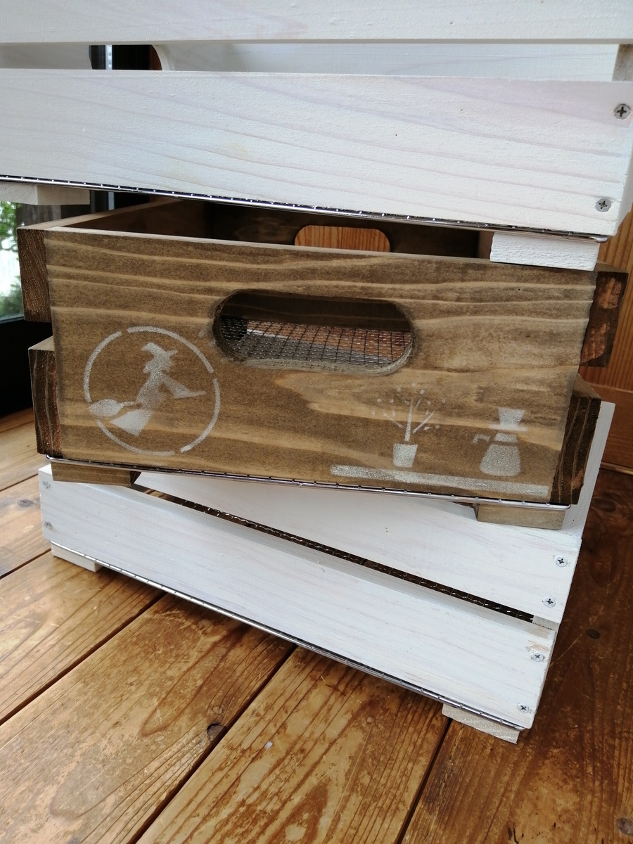 ベジタボーボックスは、今回は色を変えてウォールナットにしました。2倍希釈でサクサク塗れました。