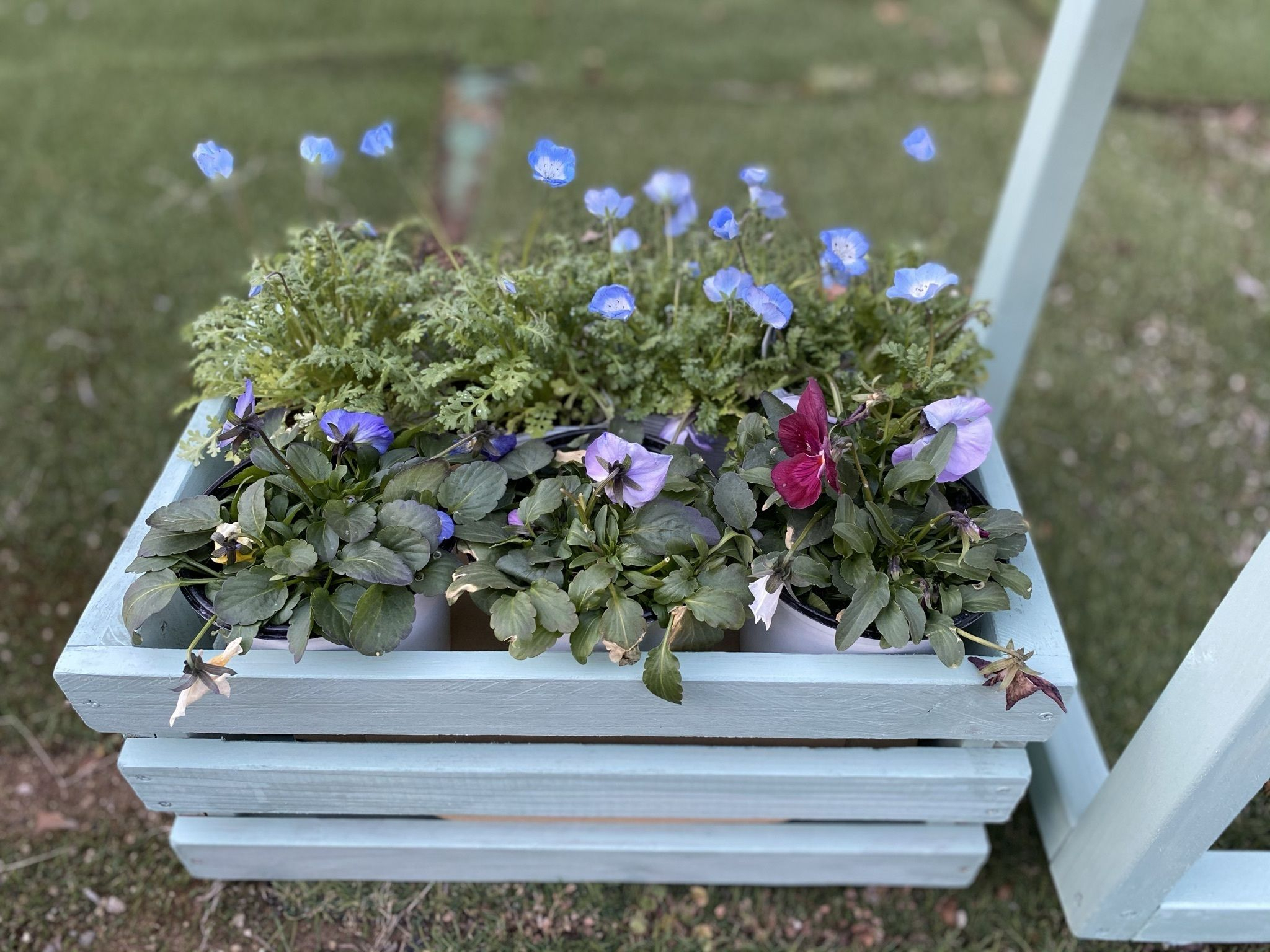 ネモフィラですね。コンテナとの色合わせステキですね😄