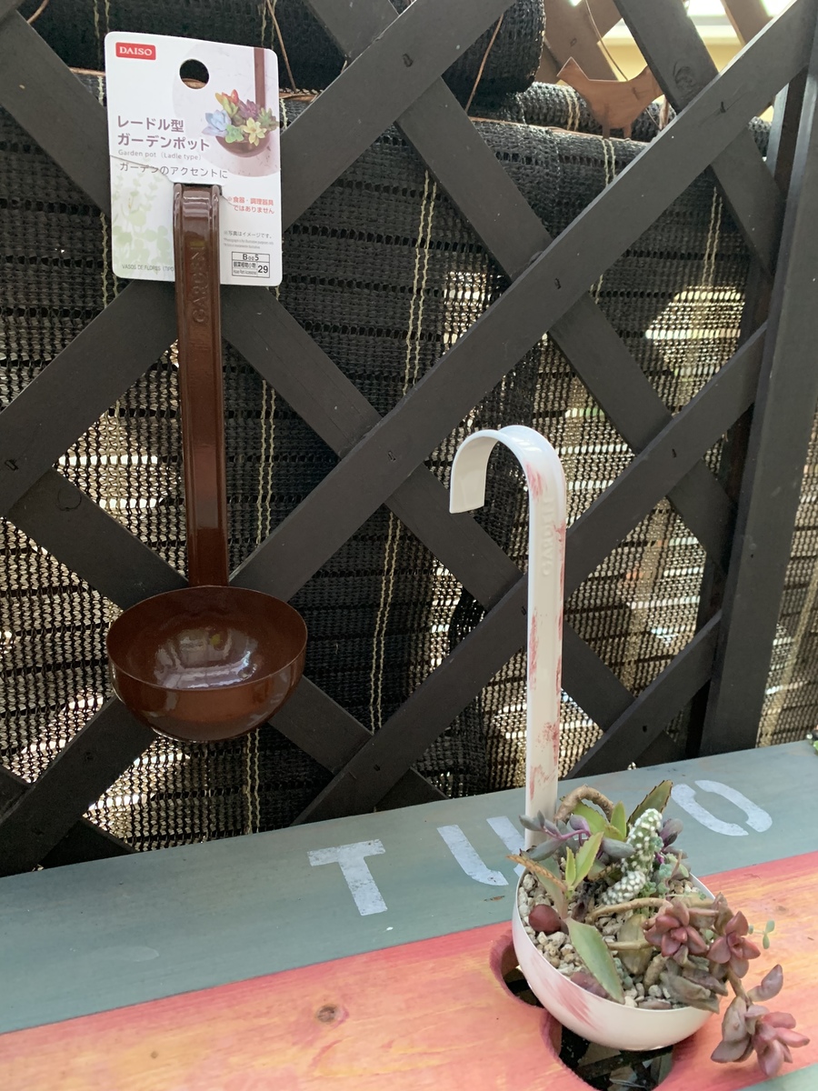 トップ > グリーン > 多肉寄せ植え はるかのん 2023/03/09 18:23 多肉寄せ植え WS では無く 初めて自分なりに寄せ植えしてみました 器は、ダイソーの "レードル型ガーデンポット" にブラウンで汚し加工してみました 底には、穴がないのでビットで開けました カラーは、このホワイトとブラウンです とりあえず このホワイトだけ寄せてみました ブラウンもなかなか綺麗な色合いです❣️ いいね 共有する 共有する X LINE リンクをコピー コメントする 4 件の返信 (新着順) ミュートしたユーザーの投稿です。 投稿を表示 あつつ 2023/03/10 06:39 ダイソー周りしなくては、 アイデアありがと〜! いいね 返信する ミュートしたユーザーの投稿です。 投稿を表示 はるかのん 2023/03/10 07:51 あつつ さん おはよう😃ございます コメントありがとうございます😊 そうなんです ダイソーに限らず 100均パトロールはこまめにね❣️ いいね 返信する ミュートしたユーザーの投稿です。 投稿を表示 吉光 2023/03/09 20:17 プチ寄せ植えして ひっかけて楽しめて可愛いですネ😍 いいね 返信する ミュートしたユーザーの投稿です。 投稿を表示 はるかのん 2023/03/09 21:59 吉光 さん こんばんは〜😁 そうなんです 引っかけられるので うっかりして ひっくり返す事が無いので 安心です😅 いいね 返信する ミュートしたユーザーの投稿です。 投稿を表示 シダーローズ 2023/03/09 20:12 はるかのんさん、こんばんは。 ちょっと錆びた感じがいい味出してますね〜。 材質はプラスチックですか? いいね 返信する ミュートしたユーザーの投稿です。 投稿を表示 はるかのん 2023/03/09 21:54 ローズ さん こんばんは🌇 サビサビ感出てますか? 良かったです😉 ありがとうございます♪♬ 材質は 鉄 (Iron )です 鉄工用ビットで開けました✌️ いいね 返信する ミュートしたユーザーの投稿です。 投稿を表示 **831**さん 2023/03/09 19:27 お玉ではありませんか!!! こんなの売っているんですね。 100均行ってたのに、知らなかった😨 寄植え、可愛いです😋 いいね 返信する ミュートしたユーザーの投稿です。 投稿を表示 はるかのん 2023/03/09 19:46 831 さん こんばんは🌇 ありがとございます♪♬♪ そうなんですよ おたまの型です ラベルには、 ガーデンポットなので ※ 食器・調理器具ではありません と書いてますよ❗️❗️ ww いいね 返信する