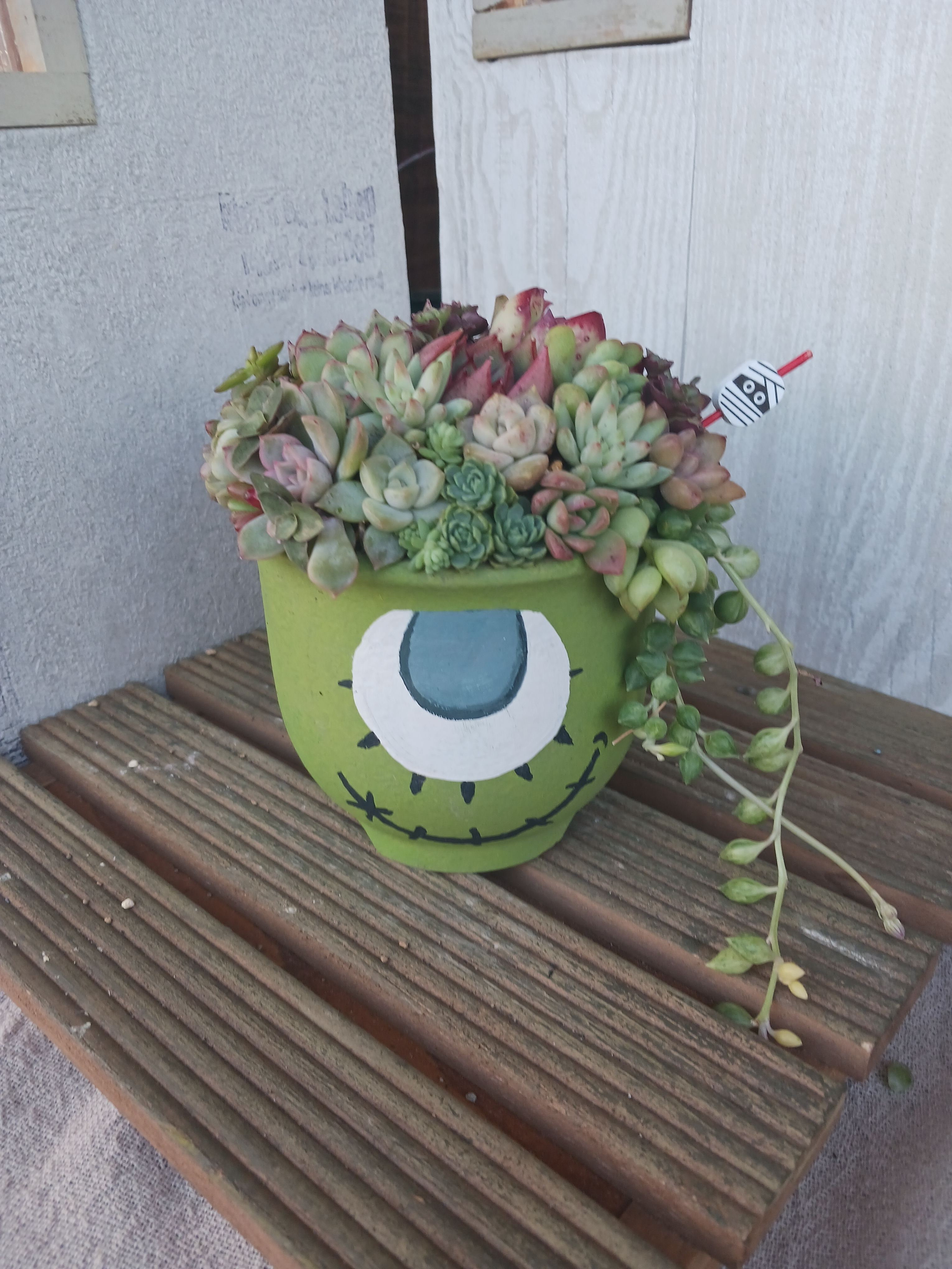 寄せ植えしながら、モンスター鉢を何度も見てしまいそうな楽しい鉢ですね🎶